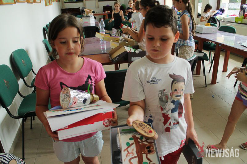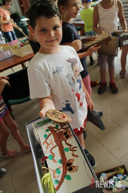 Az elkészített figurák később játéktárggyá váltak, vagy gondosan őrzött kis kedvencé váltak. A tábor utolsó napján már minden résztvevőnek volt mire büszkének lennie. A szorgos csapat tagjai egymás után hozták elő a kincses dobozaikat, amelyekben a hét terméseit gyűjtögették.