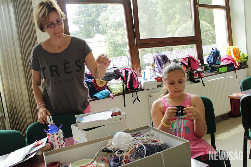 – Idén nem napi tematika volt, hanem egy egész heti szöszmötölést építettem fel. Gondolatban Szösz nénét hívtuk segítségül, ami azt jelentette, hogy minden, ami fonál, nemez, kender, vatta, esetleg pamut előkerült a zsákjainkból, és ezekből alkottak a táborlakók kedves kis játékokat, kabalákat – foglalja össze tömören a kézműves tevékenységek vezérfonalát Kugyeláné Décsei Mónika táborvezető.