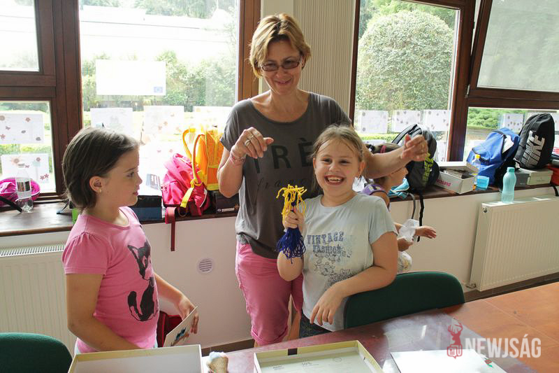 – Idén nem napi tematika volt, hanem egy egész heti szöszmötölést építettem fel. Gondolatban Szösz nénét hívtuk segítségül, ami azt jelentette, hogy minden, ami fonál, nemez, kender, vatta, esetleg pamut előkerült a zsákjainkból, és ezekből alkottak a táborlakók kedves kis játékokat, kabalákat – foglalja össze tömören a kézműves tevékenységek vezérfonalát Kugyeláné Décsei Mónika táborvezető.