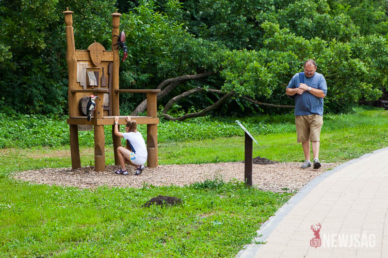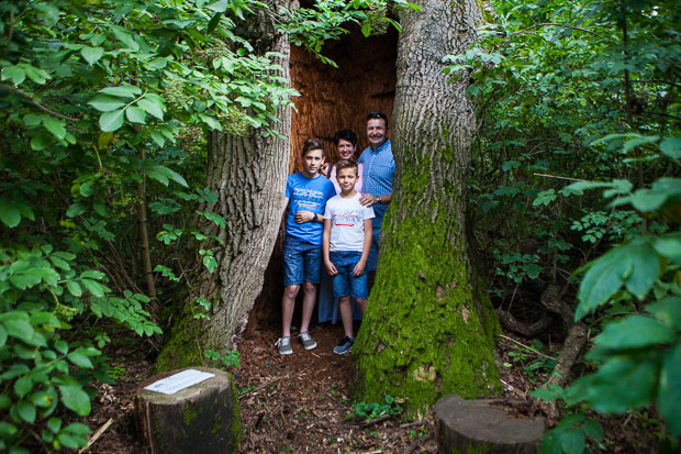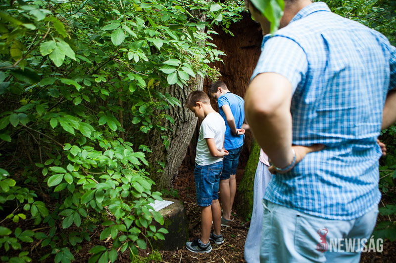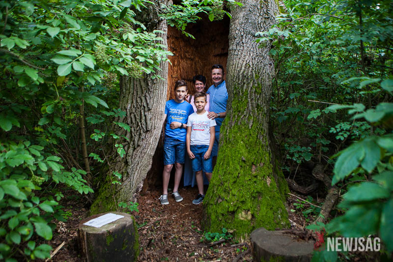 – Ez a fa egy igen különleges példány itt, az Anna-ligetben, még a látogatók sem biztos, hogy felfedezik. Ez egy több száz éves kocsányos tölgy, aminek teljesen üreges a belseje. Kikorhadt a belső része, és már csak a külső tartó váz az, ami élteti a fát, de egyébként egy élő fa és egy csodálatos képződmény, ami több embert is magába fogad – árulta el a látogatóközpont vezetője.