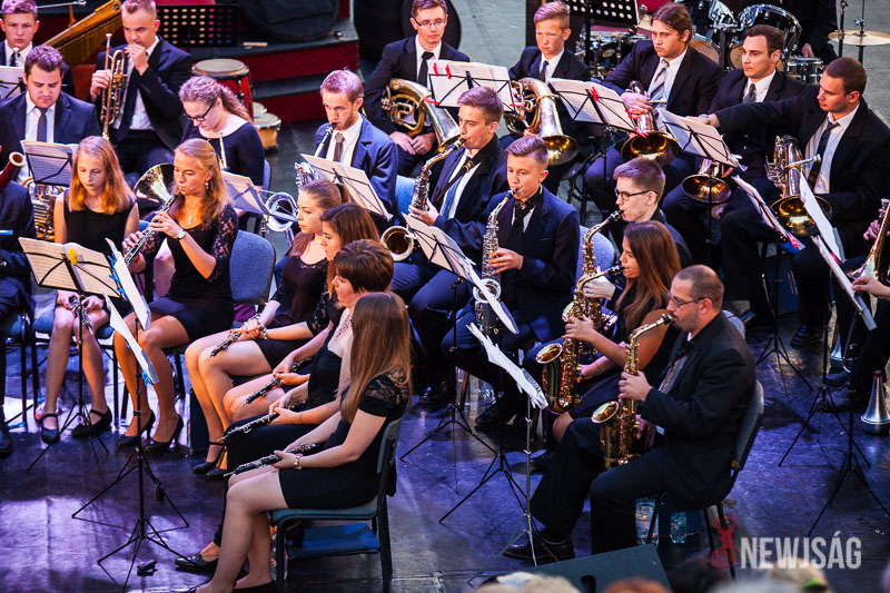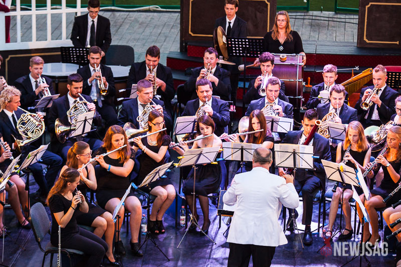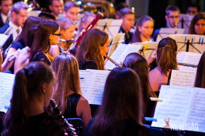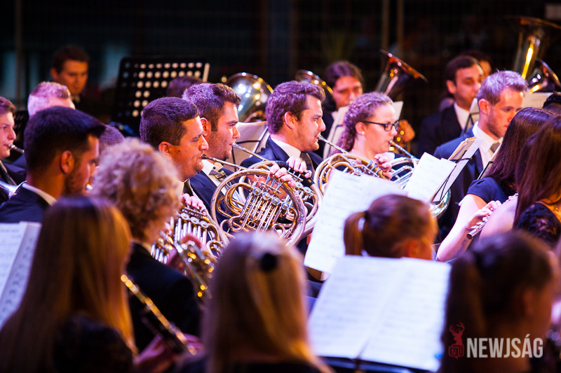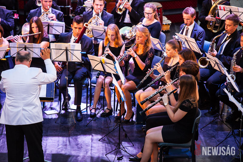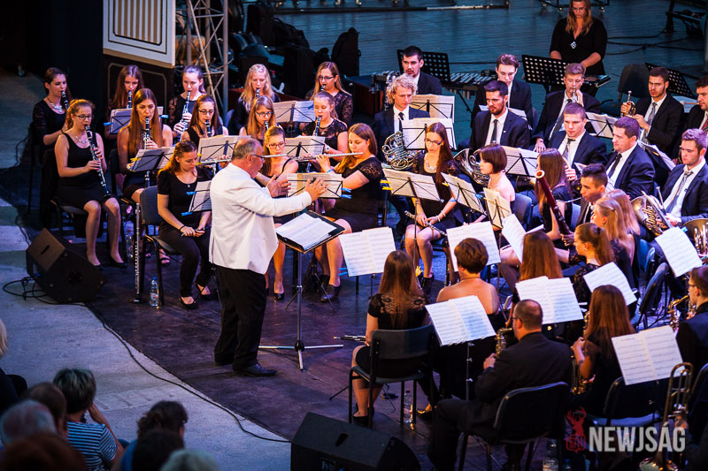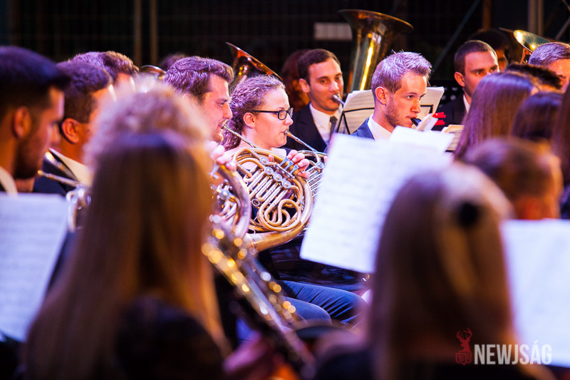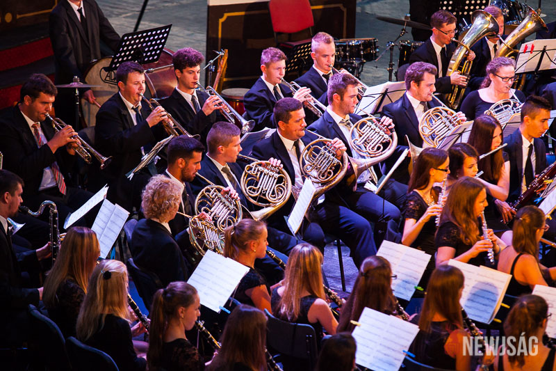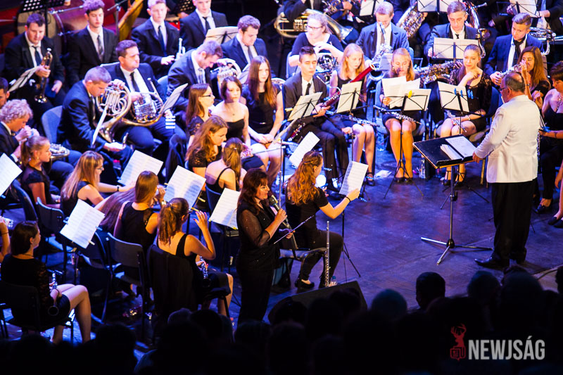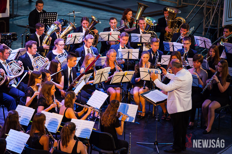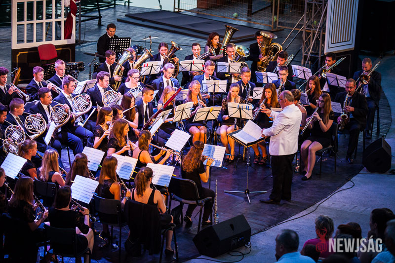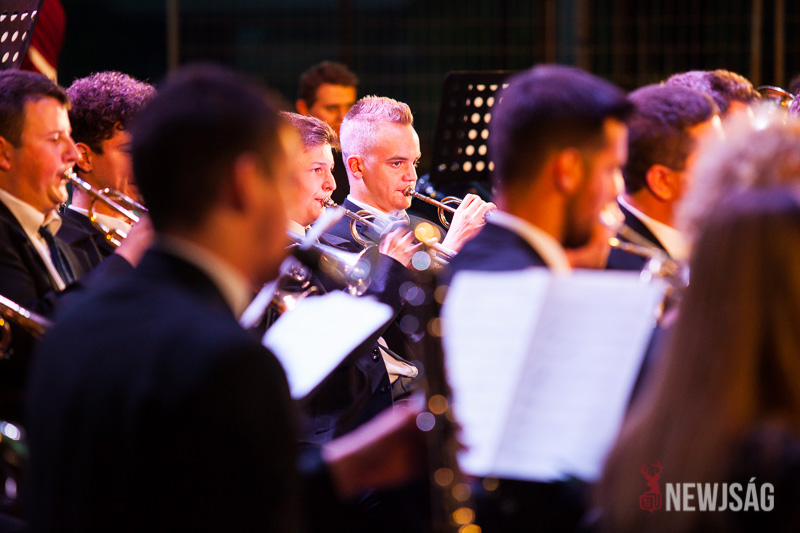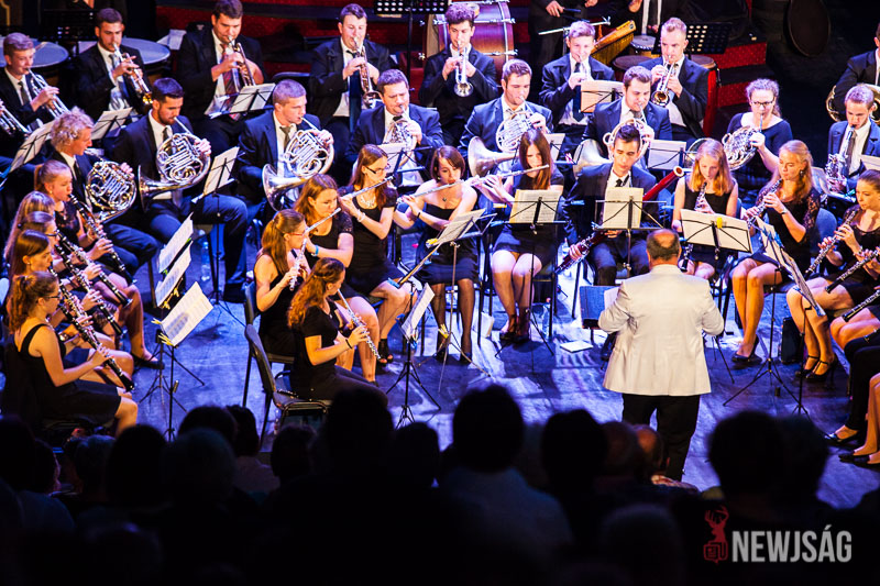 A zenekar egyórás koncertjét Verdi Nabucco című operájához írt nyitányával kezdte, amit Franco Cesaini írt át fúvósok részére. Egyveleget hallhattunk „A Keresztapa” című film zenéjéből, amit Nino Rota jegyezz, és Bob Rogers szerzeményével folytatták, majd John Williams Star Wors című film zenéje hangzott el. Különlegesség a fúvósoknál az, hogy Michael Jackson dalait hangszerelték át fúvósok részére, amivel folytatódott a koncert. A záró szám Kálmán Imre Ördöglovas című művéből a Palotás volt. A közönség ovációval, felállva köszönte meg az egyórás előadást. Ráadásként Strauss Radetzky-indulóját hallhattuk, ami mindig a legutolsó zeneszám, azonban a közönség újabb darabot követelt, a ráadás ráadása a palotás volt.