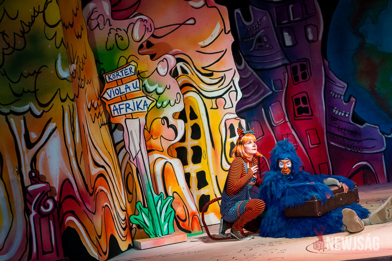 Csukás István a derűs meseíró maga dolgozta színpadra Gombóc Artúr történetét a Játékszín számára, akik elhozták Szarvasra az előadást. Gombóc Artúr (Vida Péter) nem tud elrepülni a többi madárral, mert kissé meghízott (nagyon meghízott), pedig már minden ételről lemondott, kivéve a csokoládét – a kereket, a szögleteset, a hosszút, a töltöttet és sorolhatnám még. Ezért úgy dönt, gyalog indul Afrikába, kísérői is lesznek, az Esernyőmadár (Erdélyi Timea), Sipirc, a macska (Kovács Vanda), Téglagyári megálló Kutya (Gerner Csaba), de csatlakozik Nulla kilométerkő (Szölőskei Tímea) is. Közben persze segítők is akadnak a Sofőr, a Masiniszta, a Pilóta (Vass György) és Füttyös Rezső (Dolmány Attila), aki végül el is juttatja a kis csapatot – a közönség segítségével – Afrikába.