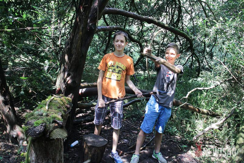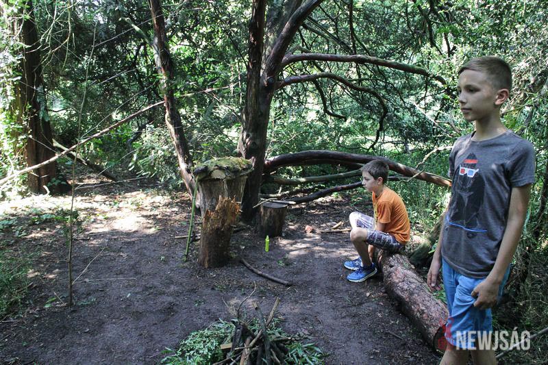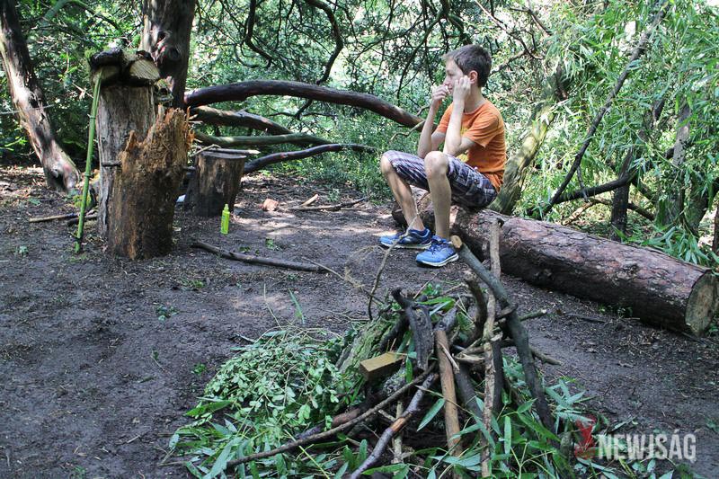 – Itt le lehet ülni, ez pedig előtte a tábortűz. A másik szobában is vannak ülőhelyek, és azt tervezzük, hogy péntekre tovább bővítjük a helyiségeket – vezet körbe Bene és Csanád az eső áztatta ideiglenes bunkerukban. Csütörtökön ráadásul itt is fogunk aludni, amit nagyon izgalmas lesz. Egyedül a szúnyogoktól tartok egy kicsit, de persze teszünk óvintézkedéseket – teszik hozzá az elkövetkező napok érdekességeiről szólva.