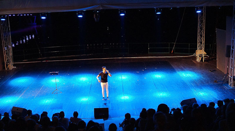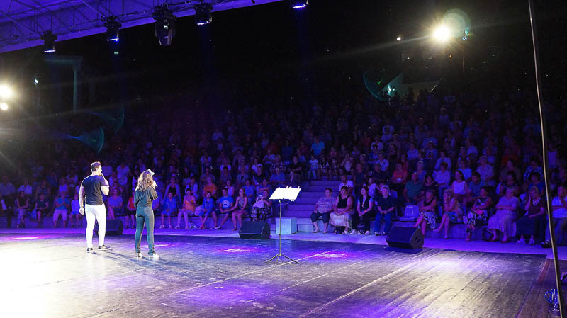 Csütörtökön este Lázár Zsolt esperes, igazgató-lelkész úr teltházat köszönthetett a Vízi Színház színpadán. Annyira teltház volt, hogy a színház összes lépcsőjén nézők ültek, akiknek nem jutott szék.
