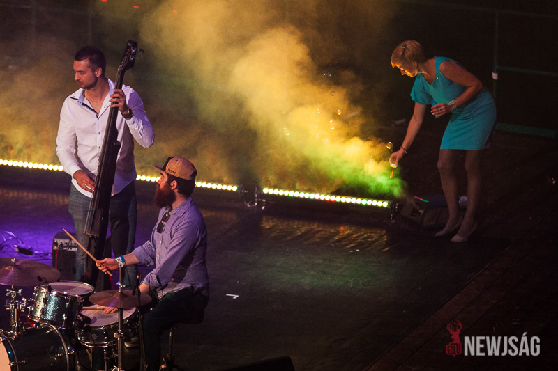 A Cimbaliband ezer hőfokon égett, zenéjük változatos, hiszen a magyar és a balkáni népzenét ötvözik jazzes és klasszikus zenei elemekkel, zenéjük máshoz nem hasonlítható, egyedi hangzású. Zenészeik kiváló hangszertudású művészek, akik örömzenét játszanak. Ebbe beleértem Szita Esztert is, akinek különleges hangja egy hangszernek is megfelelne. Az este érezni lehetett azt a családias légkört, amiben az együttes létezik, ezt adták át a közönségnek is. Már az első dallal levették a szarvasi nézőket a lábukról, mert nem csak energikus kezdés volt, de az Úton vagyunk című dalba belecsempészték Szarvas nevét is. Már itt elkezdődött a nézők „tombolása”. A koncert végig energiában, ritmusban gazdag, tapsra invitáló volt. Nem csak a zenészeket, de a nézőket is vitte magával. Több dalban a nézőtéren ülőket is megénekeltették. Nagyon szép estének lehettünk részesei.
