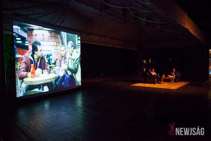 Kedden este a „Film a víz fölött” házigazdája, Soványné Nagy Erzsébet rövid bevezetőben ismertette Pindroch Csaba színészi állomásait, majd színpadra hívta az este kérdezőjét Szabó Lászlót, a MTT titkárát.
