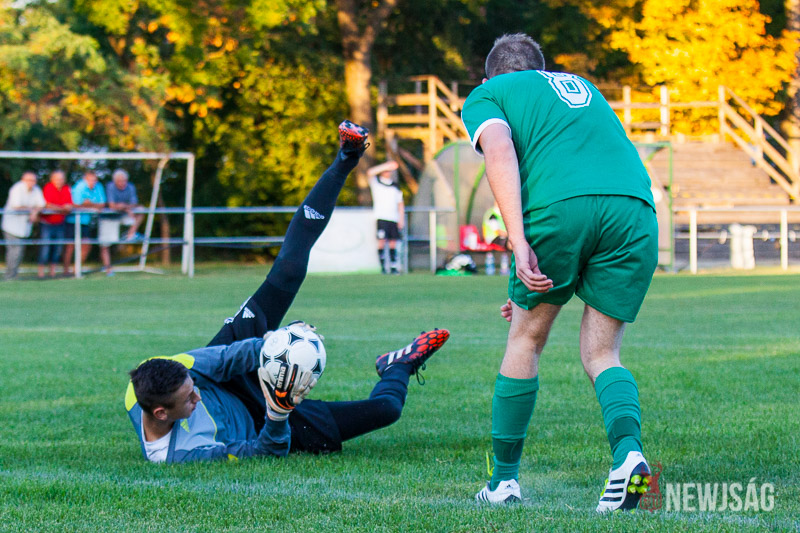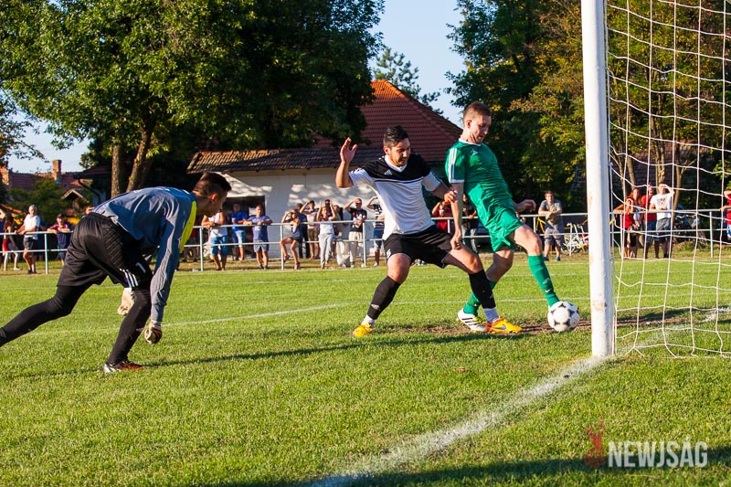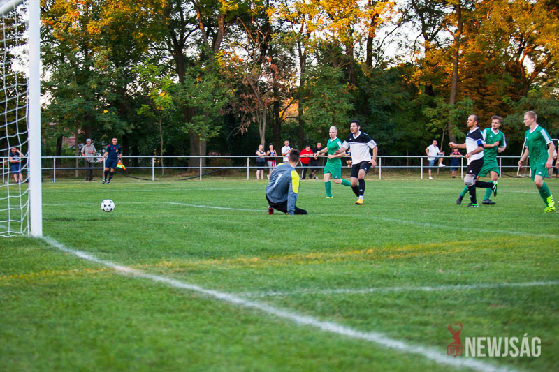 A 34. percben egy szabadrúgásból kijövő labda az érkező csabacsűdi támadósor elé pattant, amit Viszkok Gábor értékesített. Ugyancsak Viszkok nevéhez fűződik a következő gól mintegy 5 perc elteltével. Egy kapura lőtt labda a kapu felé csorgott Véha Bencéről. Érkezett a kétsopronyi védő, Ancsin István, ill. a csabacsűdi támadó, akiknek alig volt közük a labda pályájához, annál inkább egymás lábához, mert mindketten beestek a kapuba, a labda meg szépen átgurult a gólvonalon. 3-0.