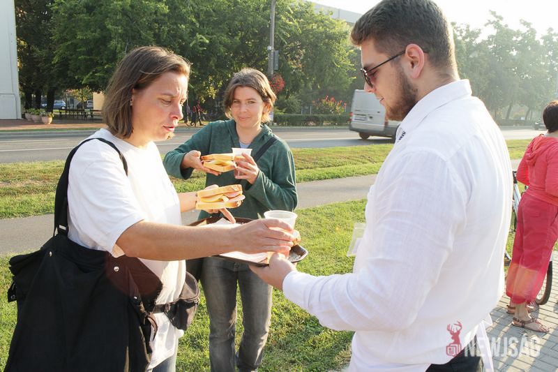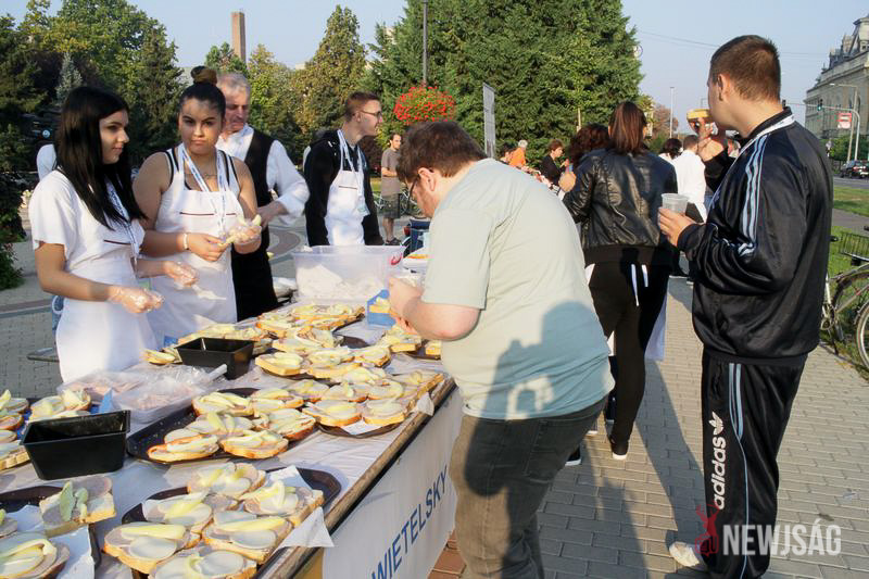 – A teát nagyon viszik, mert szinte meg sem kell állni érte – mondja Szitó Roland, aki épp egy nagy tálcával egyensúlyozva kínálta körbe az nézelődőket. De fogy a szendvics is, mert abból akár kettőt is be tudunk csomagolni, így később is elfogyaszthatják. Sajnos csak kevesen állnak meg, de akik elfogadják az invitálást, nagyon hálásak.
