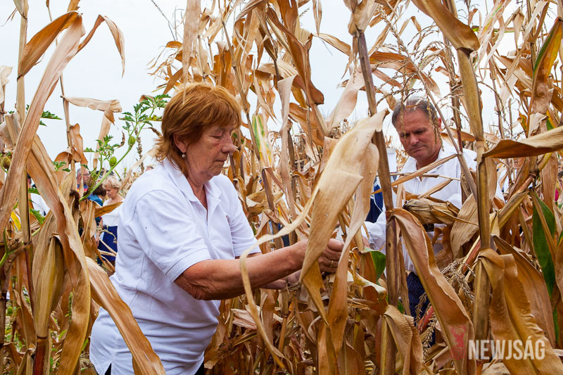 – Pontosan azt választották, ami nekik való – emlékezett vissza a minden kukoricanap házigazdája. – A kukorica meghatározó volt a csabacsűdiek történelmében. Termőhelyi adottságaik olyanok voltak, hogy itt a kukorica megtermett. Akkor kezdett divatba jönni az abraktakarmányt evő jószágoknak a hizlalása mondjuk ezelőtt 150 évvel, és akkor lett intenzívebb a tartás, akolban tartották a disznót és nem kint szaladgáltak az erdőszélen. A csabacsűdi ember arról lett híres utána, hogy ő állattartó volt és ráadásul abraktakarmánnyal hizlalta a jószágait, aminek alapanyaga a kukorica – elevenítette fel a történelmi előzményeket a betakarítás moderátora.