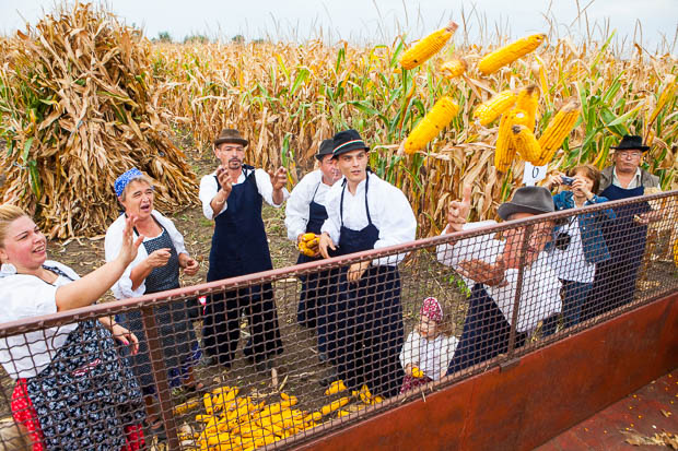 – Pontosan azt választották, ami nekik való – emlékezett vissza a minden kukoricanap házigazdája. – A kukorica meghatározó volt a csabacsűdiek történelmében. Termőhelyi adottságaik olyanok voltak, hogy itt a kukorica megtermett. Akkor kezdett divatba jönni az abraktakarmányt evő jószágoknak a hizlalása mondjuk ezelőtt 150 évvel, és akkor lett intenzívebb a tartás, akolban tartották a disznót és nem kint szaladgáltak az erdőszélen. A csabacsűdi ember arról lett híres utána, hogy ő állattartó volt és ráadásul abraktakarmánnyal hizlalta a jószágait, aminek alapanyaga a kukorica – elevenítette fel a történelmi előzményeket a betakarítás moderátora.