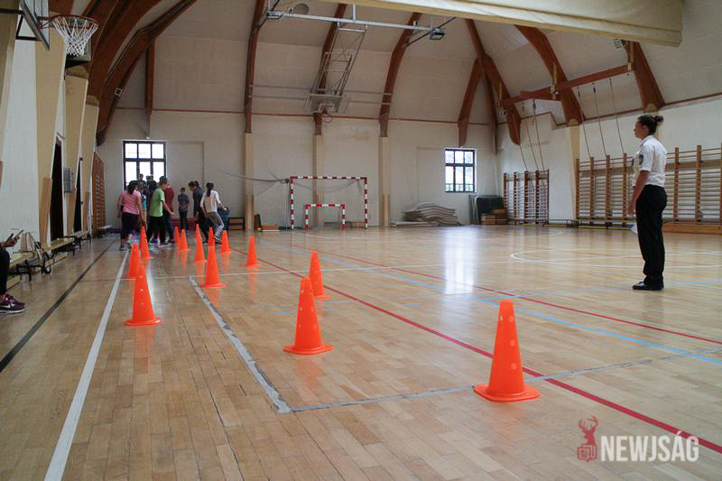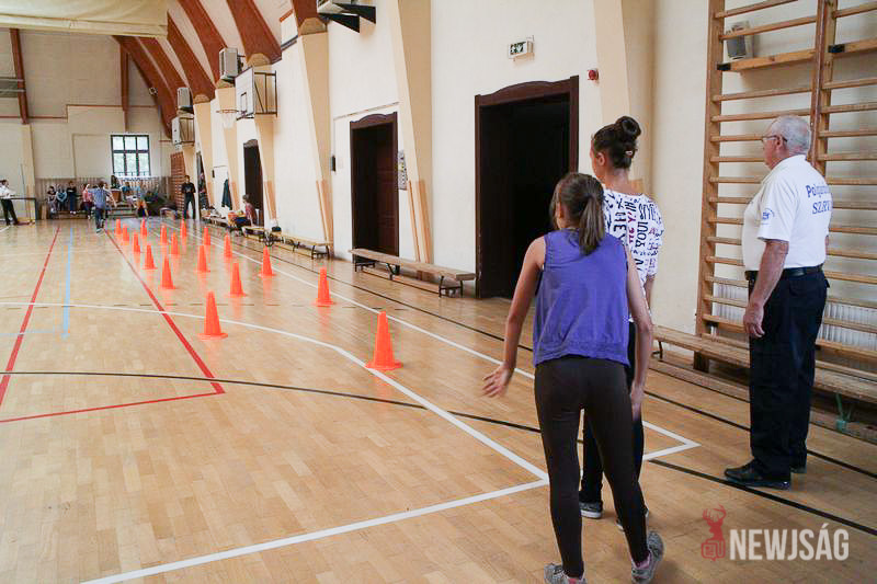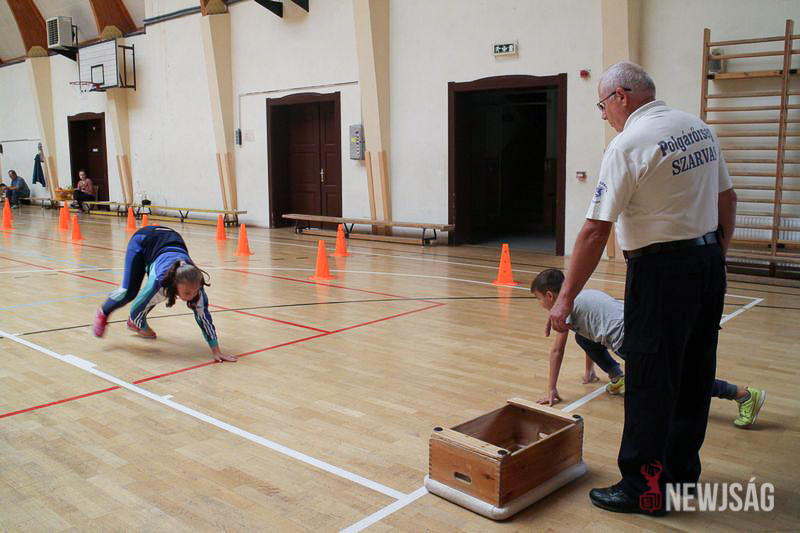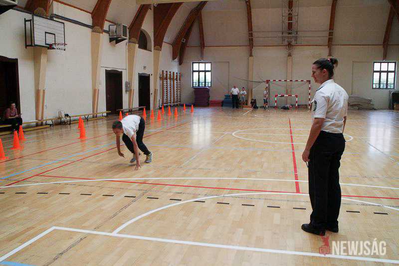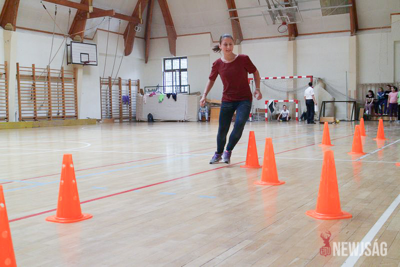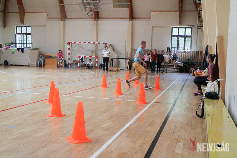 A vegyes életkorú csapatoknak bójával és labdával nehezített pályán kellett minél gyorsabban végighaladniuk. A Szarvasi Rendőrkapitányság és a Polgárőrség munkatársai segítettek a délelőtt lebonyolításában, olykor mosolyogva egy-egy érdekes feladatmegoldáson.