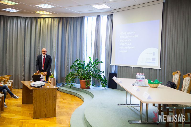 “A Szarvasi Járási Hivatal kedvező piaci helyzetben van, és elmondhatjuk, hogy ha egy fiatal regisztrál, akkor négy hónapon belül szinte biztosan tudunk neki megfelelő álláslehetőséget felajánlani”. Ezt már a második előadó, Lovász György, a Szarvasi Járási Hivatal foglalkoztatási osztályának osztályvezetője jelentette ki a GINOP-os pályázatokkal kapcsolatos tájékoztatójának bevezetőjében.