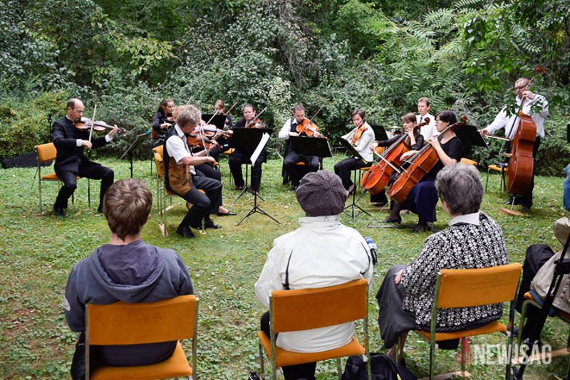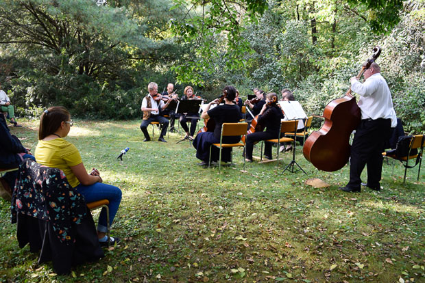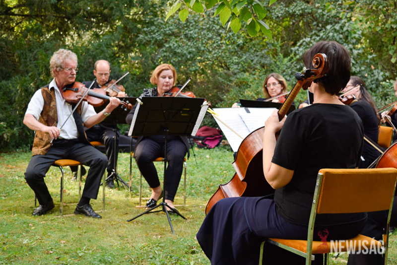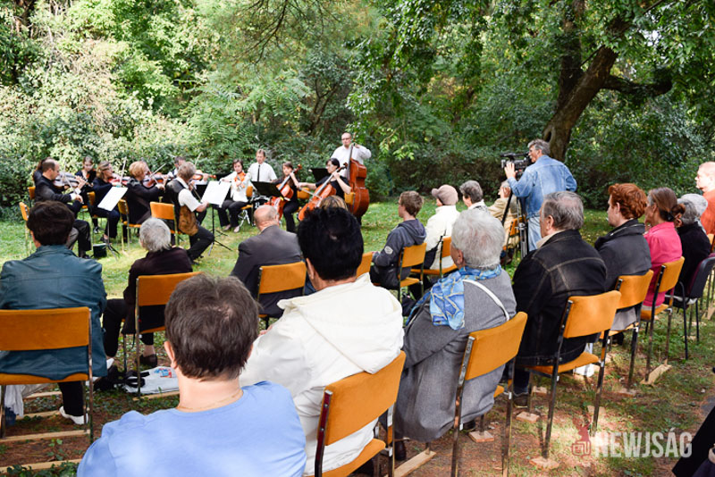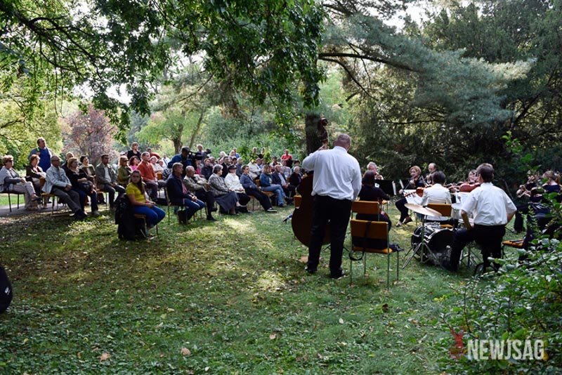 Aggódva pásztázták az eget a kamarazenekar tagjai, bízva abban, hogy a muzsika hangjai ezúttal is elűzik a felhőket. Az indiánnyár szerencsére kitartott, és még szeptember 25-én is napsütéssel és kellemes kirándulóidővel örvendeztette meg az Arborétum közönségét. A Pepi-kert vasárnap a séta mellé kísérőzenét is kínált, a Szarvasi Kamarazenekar jóvoltából.