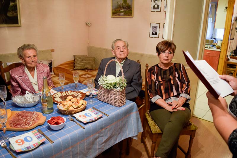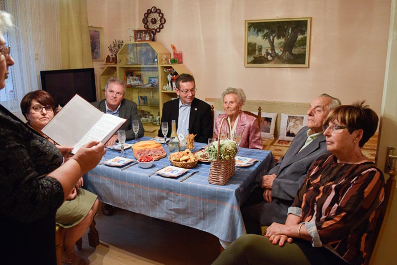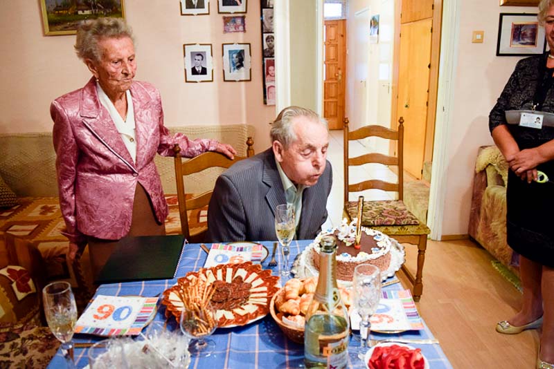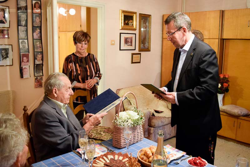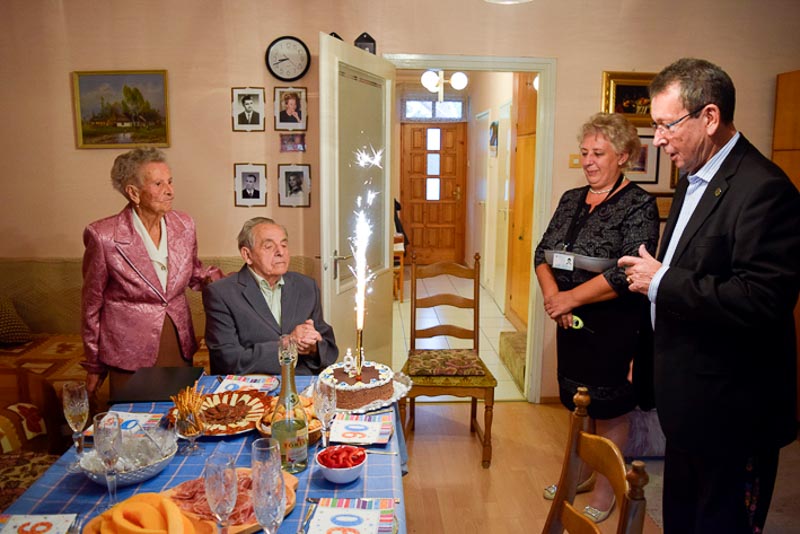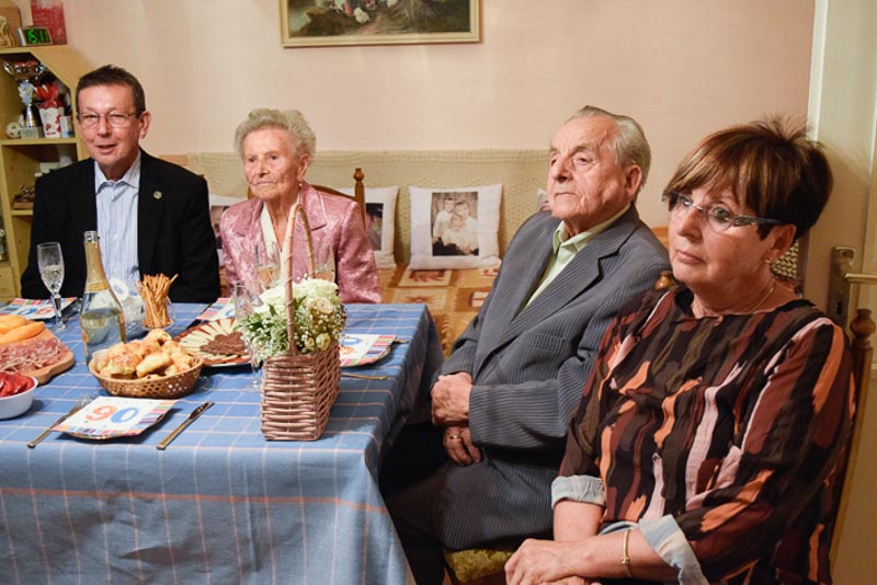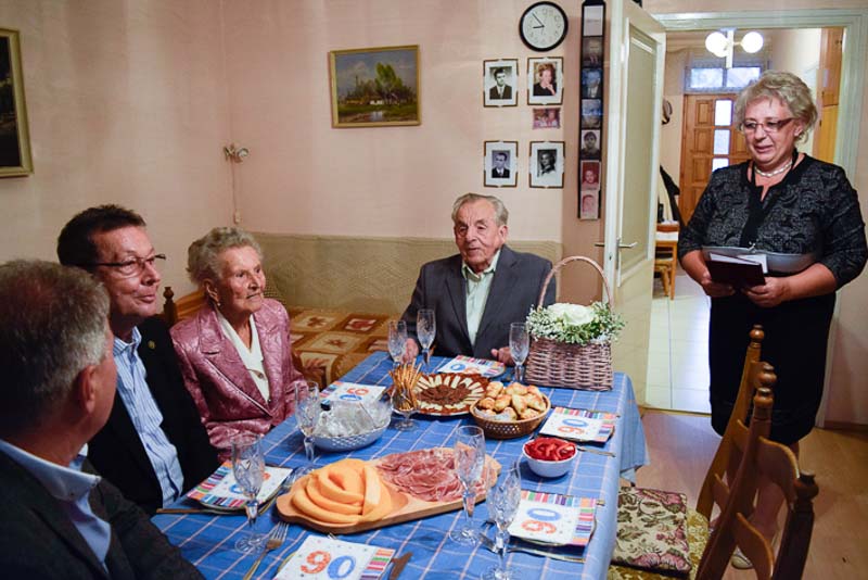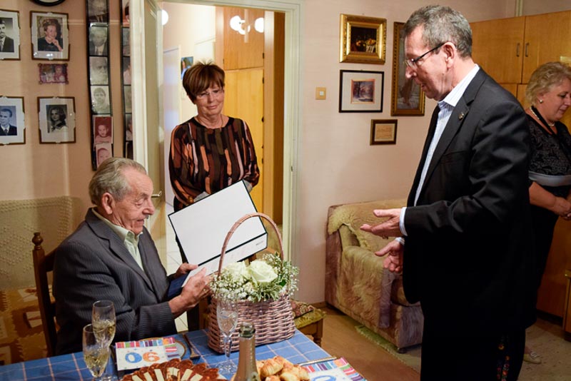 A Polgármesteri Hivatalból Uhljárné Lestyán Edit idézte fel a kilenc évtizedes életutat, majd Babák Mihály polgármester és dr. Melis János c. főjegyző gratuláltak, s nyújtották át Orbán Viktor és a városi képviselő testület oklevelét.