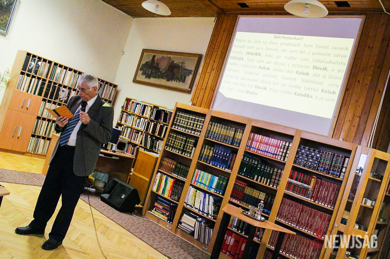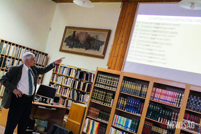 Nem tudok szlovákul – szögezte le rögtön a szlovák nyelv rejtelmeiről tartott előadásában dr. Janurik Tamás. Mint mondta, csak törve beszéli a nyelvet, viszont nyelvész professzorként, ha kell, bármilyen nyelv jellegzetességeit hosszasan tudja taglalni. A Nyitott Könyvtári Hét zárásaként meghirdetett programra sem „dögunalmas nyelvtani táblázatokat” hozott, a témát a szlovák nyelv szláv nyelvek közötti elhelyezkedéséből kiindulva, a különválásán keresztül a nyelvi érdességekig boncolgatta.