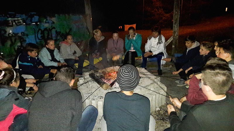 Kedden az „iskola” után sportdélután volt, amit „opekačka” (sütögetés) követett, amikor is hangulatos tüzet raktak a tanárok, s mindenki sütögethetett magának kolbászt. Ezzel még nem volt vége a napnak, a hegyoldalban éjszakai játék volt.