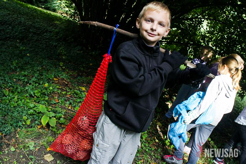 A matematikaverseny és hazajárás miatt 16 fősre megfogyatkozott társaság óriási lendülettel vetette bele magát a szemétgyűjtésbe. Volt, akik egy „szemétdetektornak” keresztelt hosszú bottal sétált, mások versikét skandálva biztatták egymást a minél hatékonyabb keresgélésre. Mindezek eredményeképp percről percre gyarapodott a zsák tartalma: jellemzően műanyag flakon, üveg és cigarettacsikk is került elő a fák, bokrok tövéből.