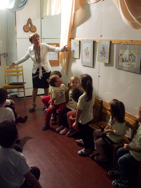 Az ünnepélyes galéria-megnyitón az óvodásokkal megbeszéltük: Ki, melyik mesefigurát ismerte fel a rajzokon? Melyik a kedvencük? Mit mesélt nekik anyukájuk ezekről? Mindezek után „moziztunk”! Mekk Elek, és Mirr-Murr meséket néztünk, és segítítettünk Laci bácsinak a legendás figurák „újragondolásában”, színezésében.