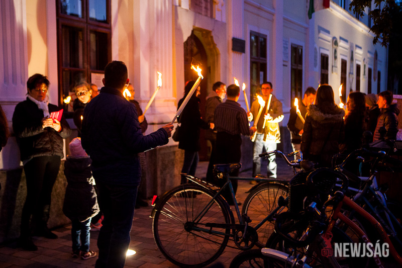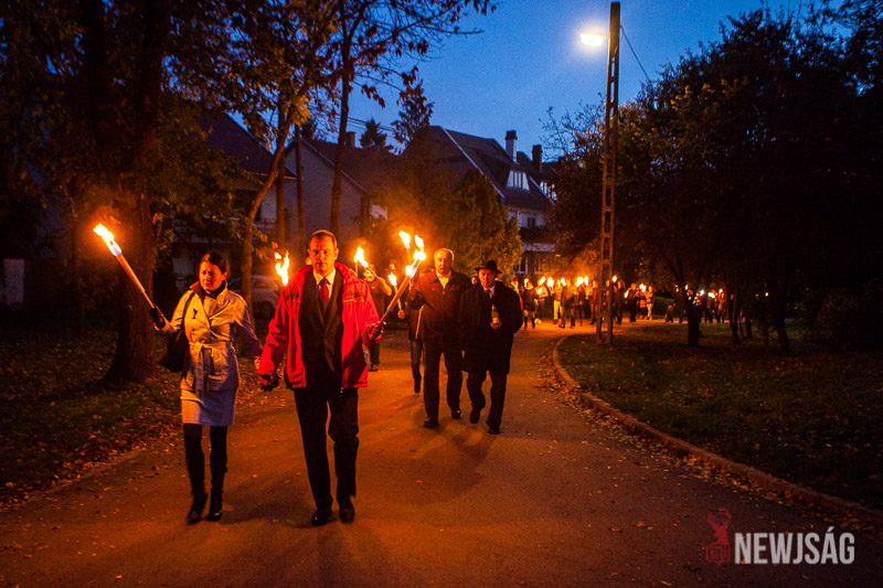 A két programot fáklyás felvonulás követte, aminek a célja a Történelmi Emlékút 56-os emlékoszlopa volt.