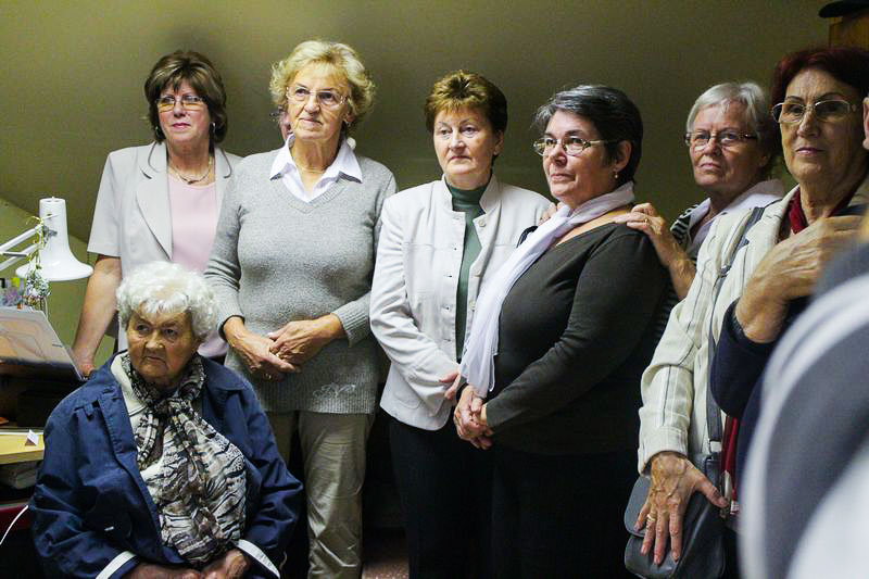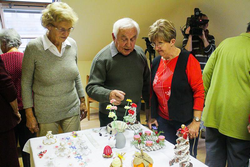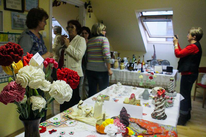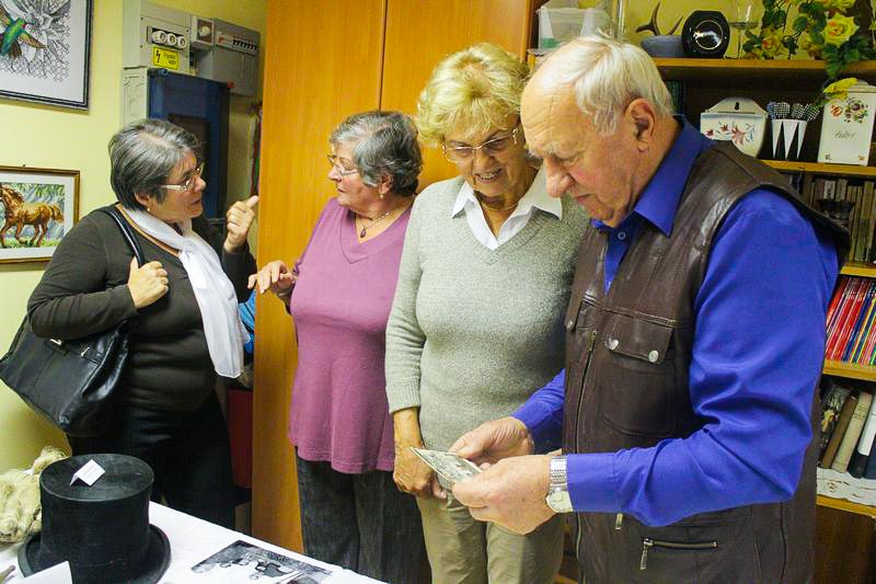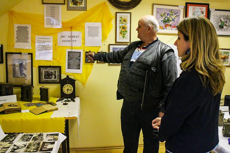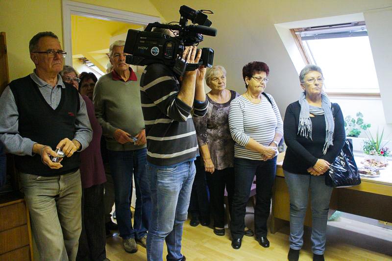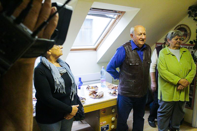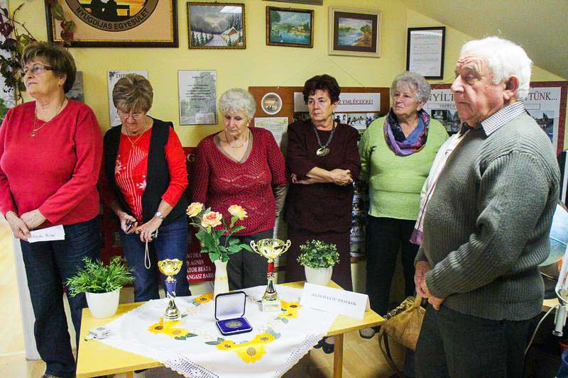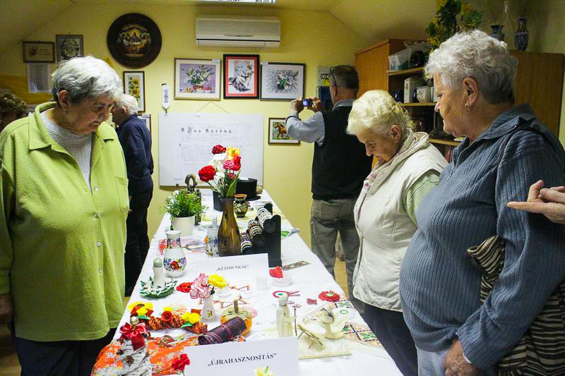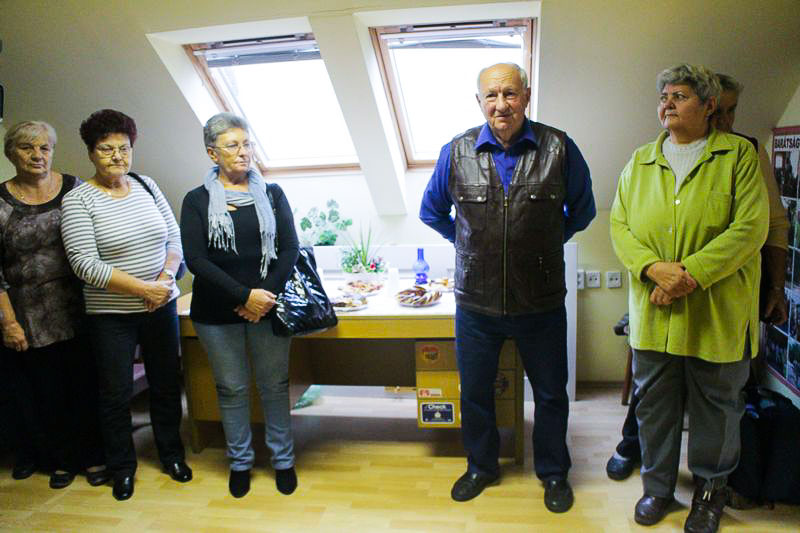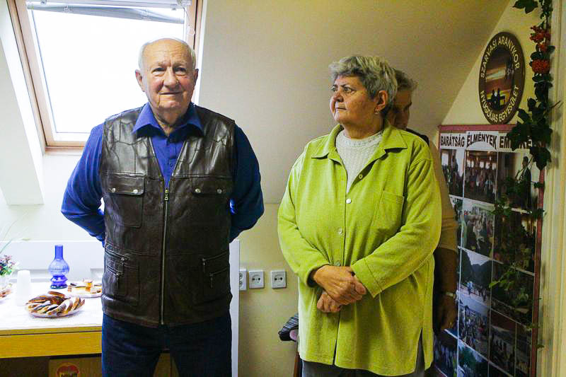 A klubhelyiség előszobájában a kollektív büszkeségeiket állították ki: oklevelek, elismerések és közös képek emlékeztettek a civil szervezet sikereire. Az ajtó fölött egy még használatban lévő korabeli csengő függött. Tusjak János, az egyesület elnöke kérte kölcsön otthonról a régi „bútordarabot”, ami mostanság az unokák egyik kedvenc elfoglaltságát jelenti. Egy nagyobb asztalt kizárólag az ő gyűjteménye ölelt fel.