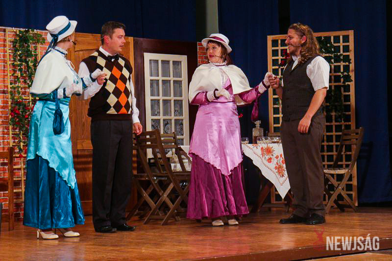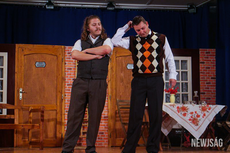 Csak az utolsó sorok maradtak üresen október 21-én, pénteken a csabacsűdi Művelődési Ház nagytermében. Sokan felvették legszebb öltönyüket, a hölgyek pedig alkalomhoz illő ruhába bújtak, jelezvén, a színházi előadás ünnepnapnak számít a településen. Az éves rendezvénytervtől eltérően ugyanis az épület átmenetileg kőszínházzá alakult, műsorra pedig Brandon Thomas örökzöldjét, a Charley nénje című vígjátékot tűzték.