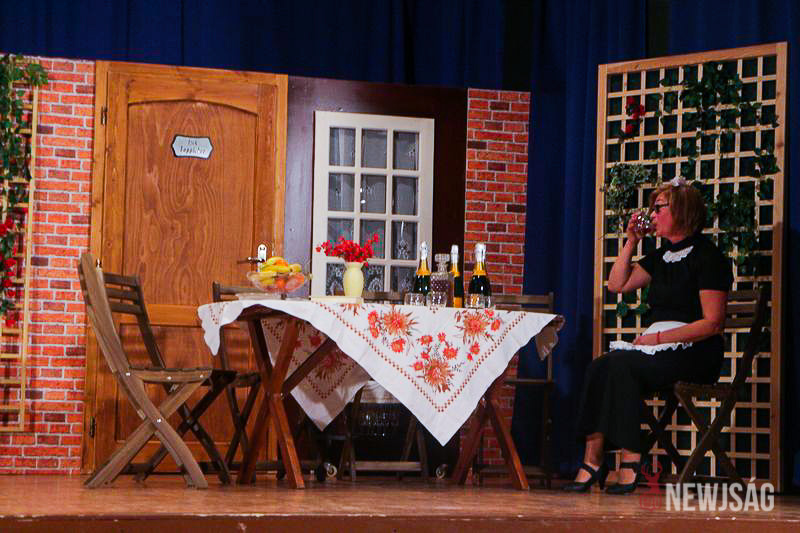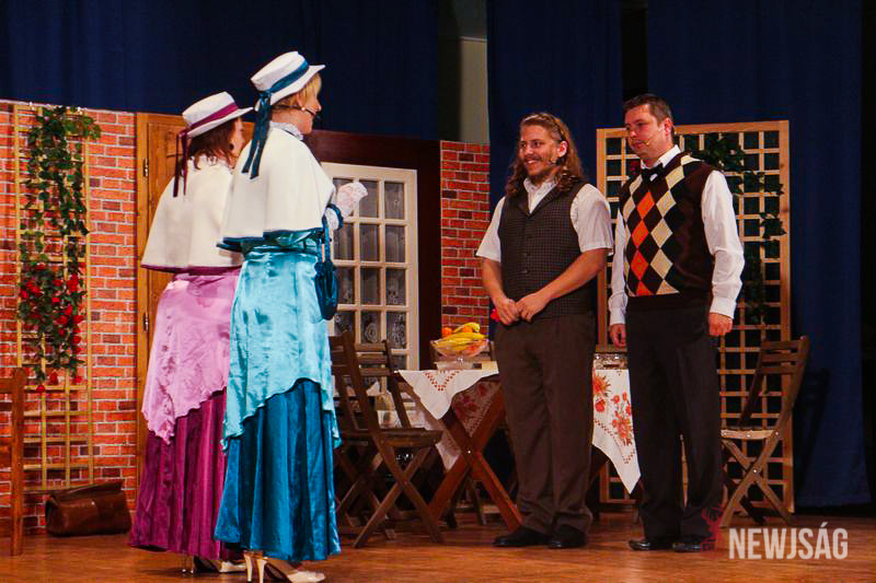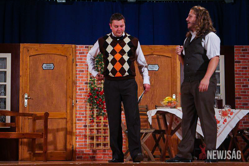Csak az utolsó sorok maradtak üresen október 21-én, pénteken a csabacsűdi Művelődési Ház nagytermében. Sokan felvették legszebb öltönyüket, a hölgyek pedig alkalomhoz illő ruhába bújtak, jelezvén, a színházi előadás ünnepnapnak számít a településen. Az éves rendezvénytervtől eltérően ugyanis az épület átmenetileg kőszínházzá alakult, műsorra pedig Brandon Thomas örökzöldjét, a Charley nénje című vígjátékot tűzték.