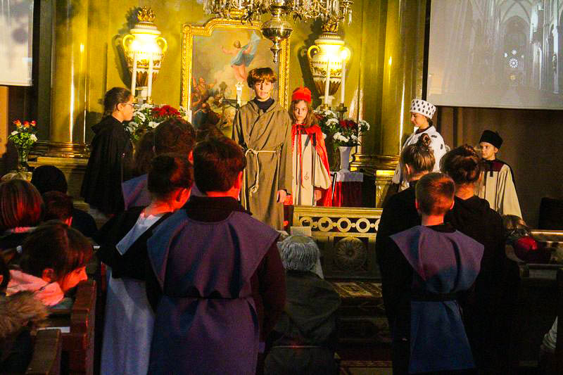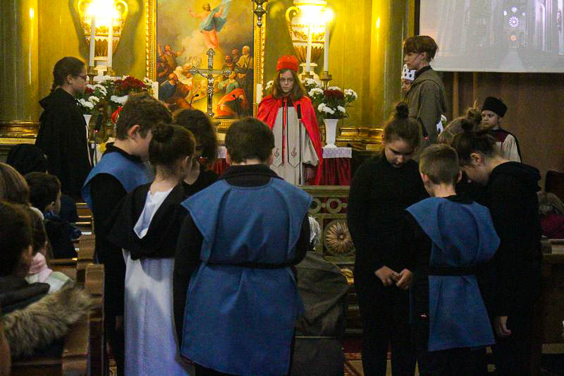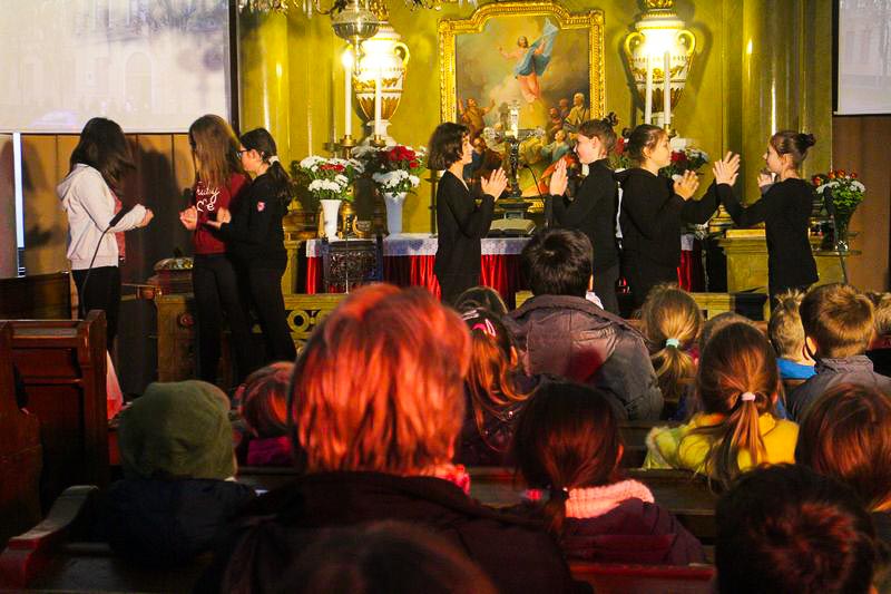 Az ősbemutató bevezetéseként Molnár Istvánné igazgatónő köszöntötte a megjelenteket. Meghatódva mondott köszönetet az elmúlt hónapok munkájáért, a templom közönsége pedig tapssal fejezte ki egyetértését.