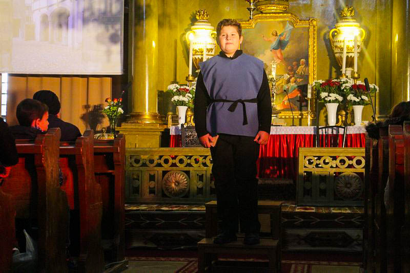 – Eszembe se jutott, hogy nem vállaljam el. Barátnőim is férfiakat alakítanak, és nem jelent különösebb problémát. Igaz, elég nehéz, hiszen 14 éves létemre egy érett férfi helyébe kell képzelnem magam, de már megbarátkoztam a helyzettel – mondja teológusöltözékben és egy sajátos parókával a fején a színtársulat oszlopos tagja.