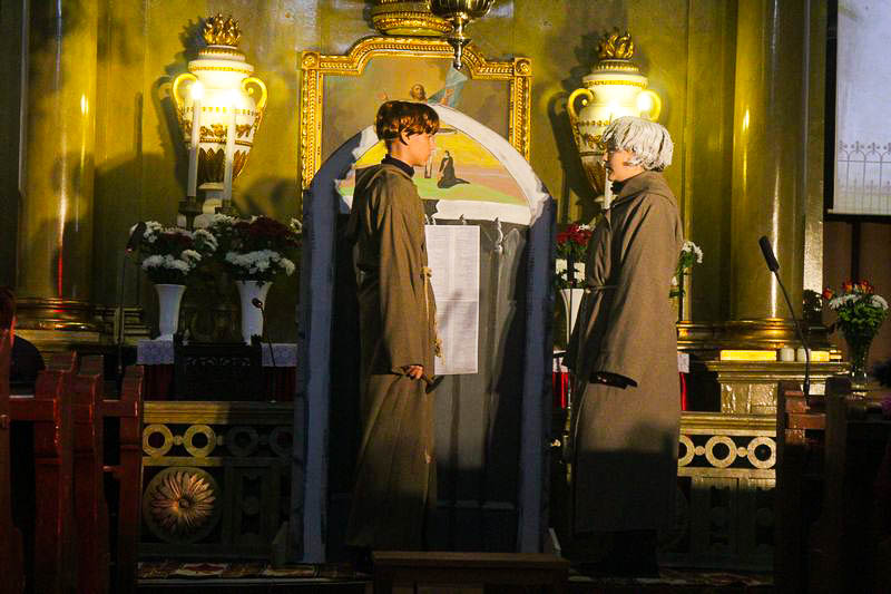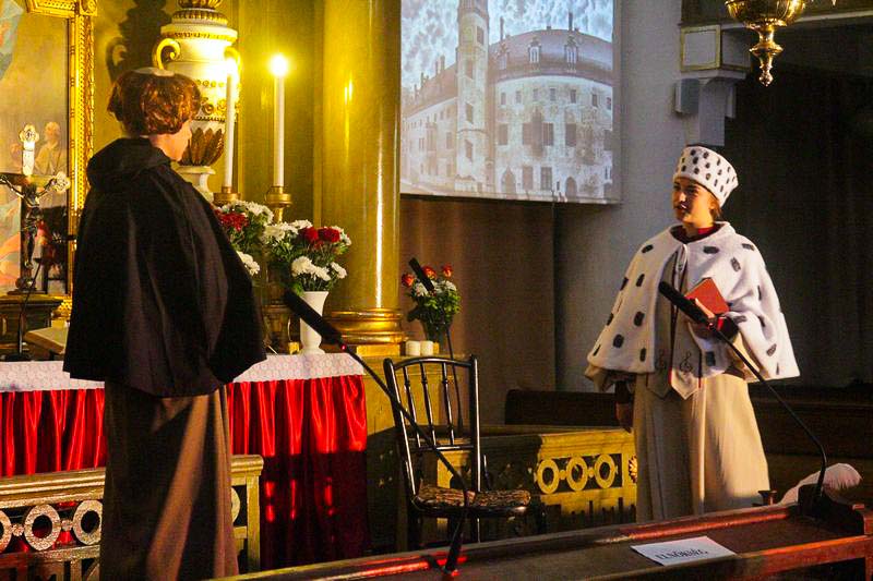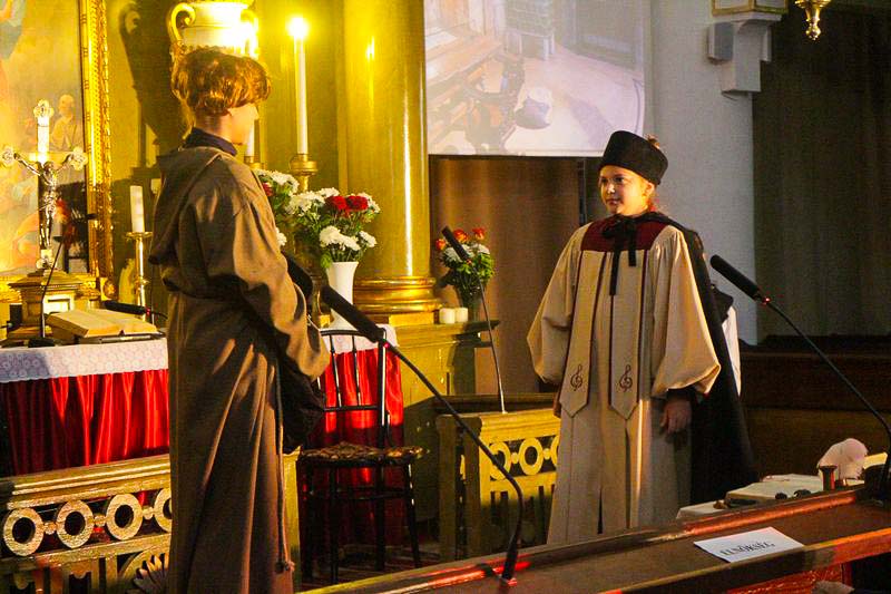 – A darab születésének több összetevője van. Egyike, hogy esperes úr finoman jelezte felénk a tavalyi évben, hogy szeretné, ha erre az ünnepre előrukkolnánk valamivel. Én tavaly végeztem teológia szakon, és volt egy tantárgyunk, ami Luther életét dolgozta fel. Ez volt a kedvenc tantárgyam, nagyon aranyos volt az előadó, Csepregi tanár úr. Továbbá láttam a róla szóló filmet is, ami ugyancsak közel áll a szívemhez. Ezek együtteséből pedig létrejött ez az előadás, amit zenés életrajzi történetként határoztunk meg – árulja a Szivárvány tehetségműhely idei darabválasztásáról Hímerné Dúló Erika, a műhely vezetője.