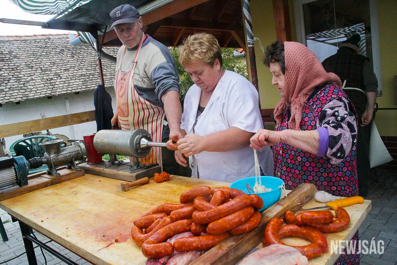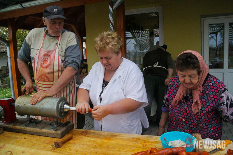 – Nem mindenki szereti a disznóvágásokat. Nekem ez olyan, mint másnak a hobbihorgászat. Világ életemben sofőr voltam, de ha hétvégén hívtak, mentem. Ezt csak úgy lehet csinálni, ha valaki szereti – nosztalgiázik, majd visszatér a többekhez, akik már javában töltik a kolbászt.