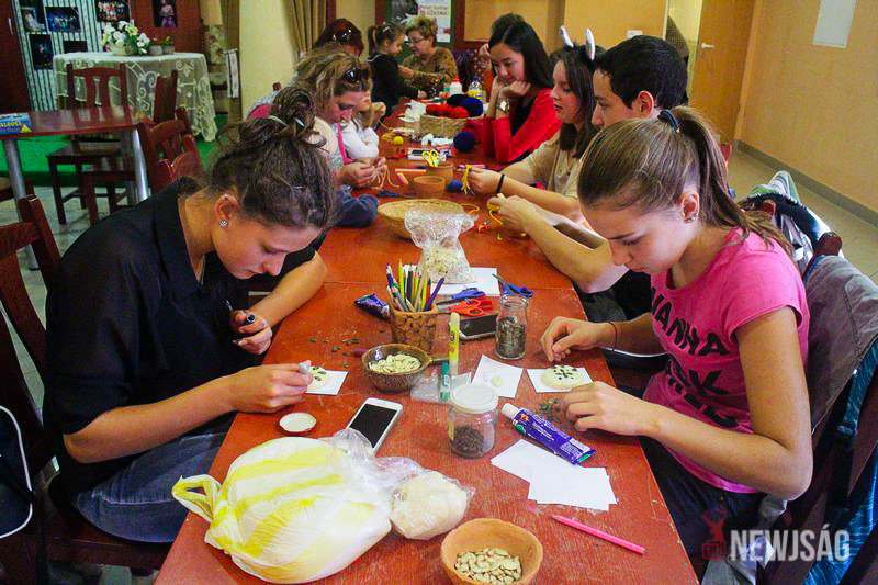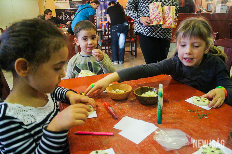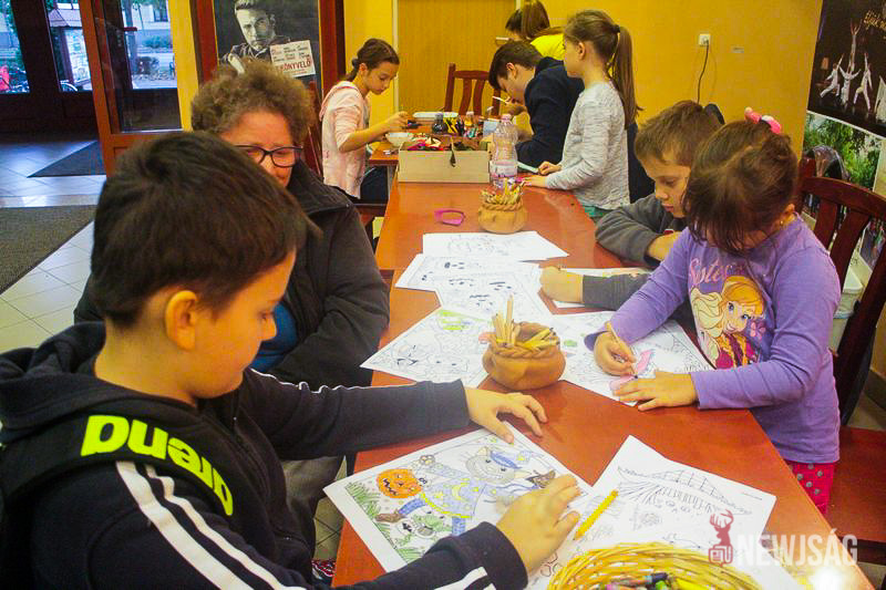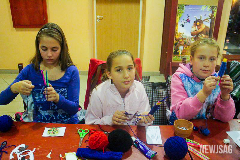 A kézműves sarokban ezalatt még „utóhalloween”-i érzetet keltettek, hiszen az ünnepre utaló színezők mellett pálcikákból pókokat, fonalból pedig tököt készíthettek a gyerkőcök.