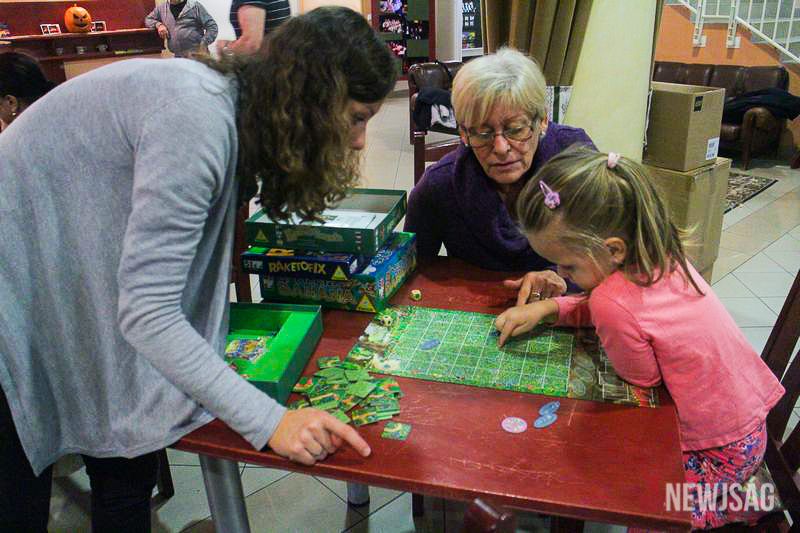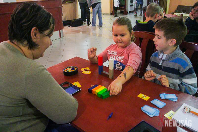 – Lassan két órája vagyunk itt. Eddig háromféle társasjátékot próbáltunk ki, közben találkoztunk ismerősökkel, nagyon jól érzi magát a kislányom. Otthon is rendszeren leülünk játszani. Nagyon szereti pl. az activityt és a jengát is, és azt vettem észre, hogy inkább a hagyományos tevékenységek kötik le az érdeklődését – mondja egy édesanya, aki hatéves gyermekével érkezett.