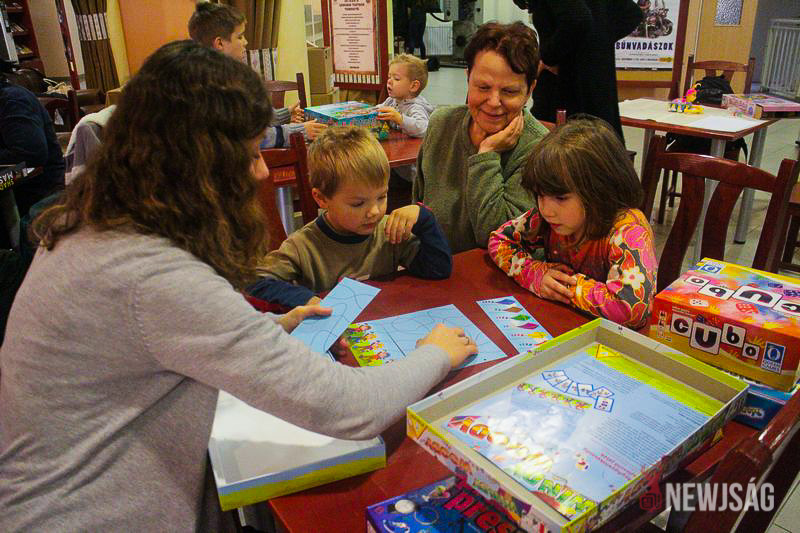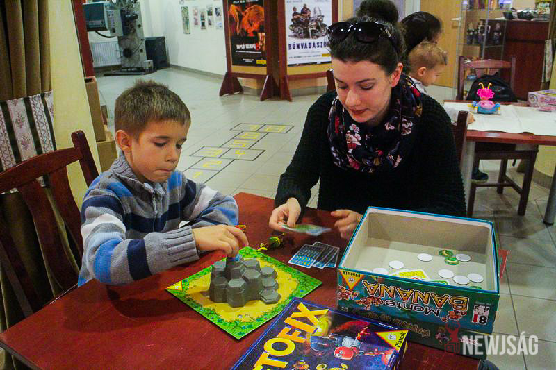 – Lassan két órája vagyunk itt. Eddig háromféle társasjátékot próbáltunk ki, közben találkoztunk ismerősökkel, nagyon jól érzi magát a kislányom. Otthon is rendszeren leülünk játszani. Nagyon szereti pl. az activityt és a jengát is, és azt vettem észre, hogy inkább a hagyományos tevékenységek kötik le az érdeklődését – mondja egy édesanya, aki hatéves gyermekével érkezett.