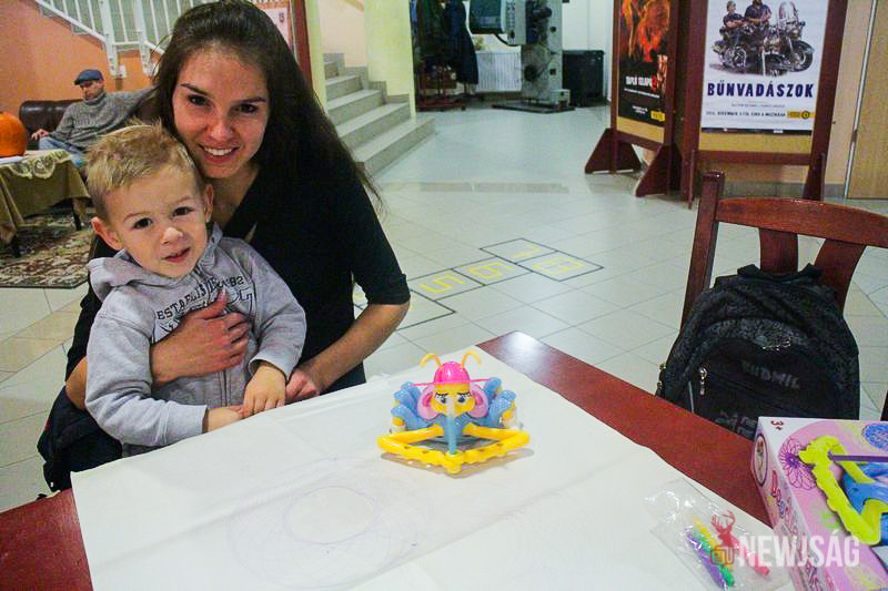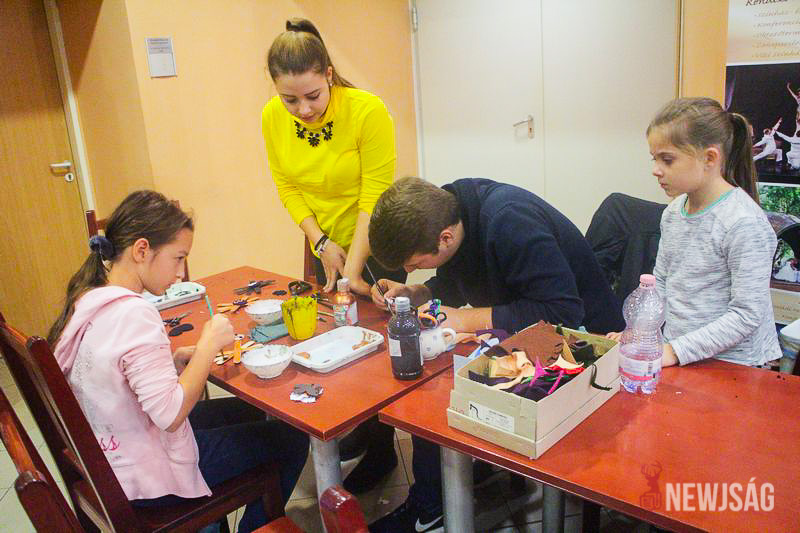 A kézműves sarokban ezalatt még „utóhalloween”-i érzetet keltettek, hiszen az ünnepre utaló színezők mellett pálcikákból pókokat, fonalból pedig tököt készíthettek a gyerkőcök.