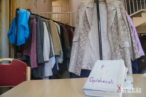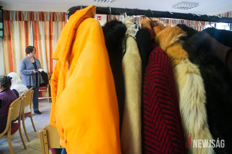 Az Ótemplomi Szeretetszolgálat épületében már alig lehetett szabad fogast találni az érkező adományoknak. Három állványon, becslések szerint több mint száz kabát sorakozott, néhány pedig – hely híján – zsákokban vagy a karosszékeken tornyosult.