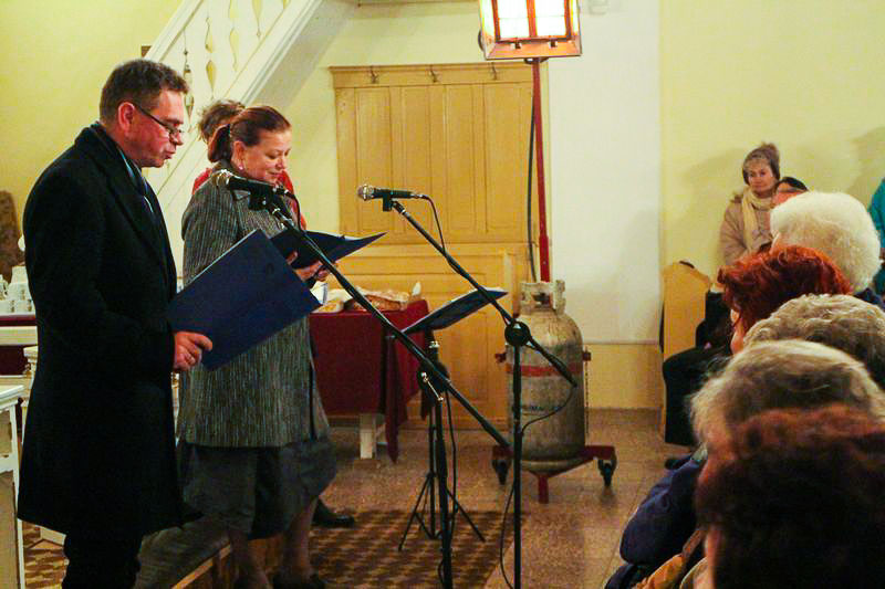 A megjelenteket Jansik Györgyné, a civil szervezet vezetője köszöntötte, majd felkérte Láng Pál evangélikus lelkészt, hogy gyújtsa meg az adventi koszorú első gyertyáját.