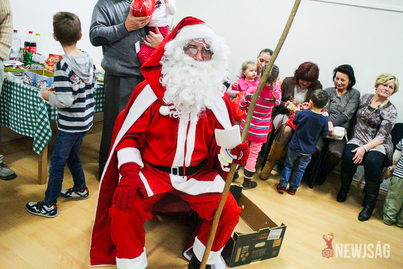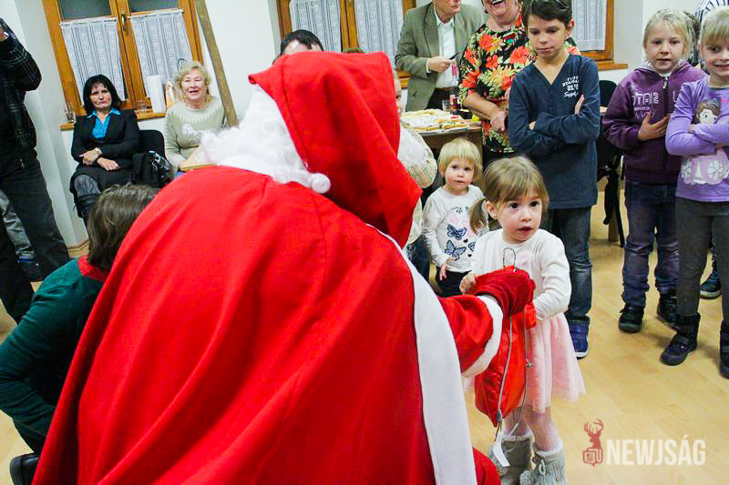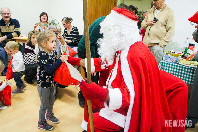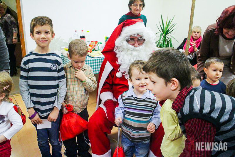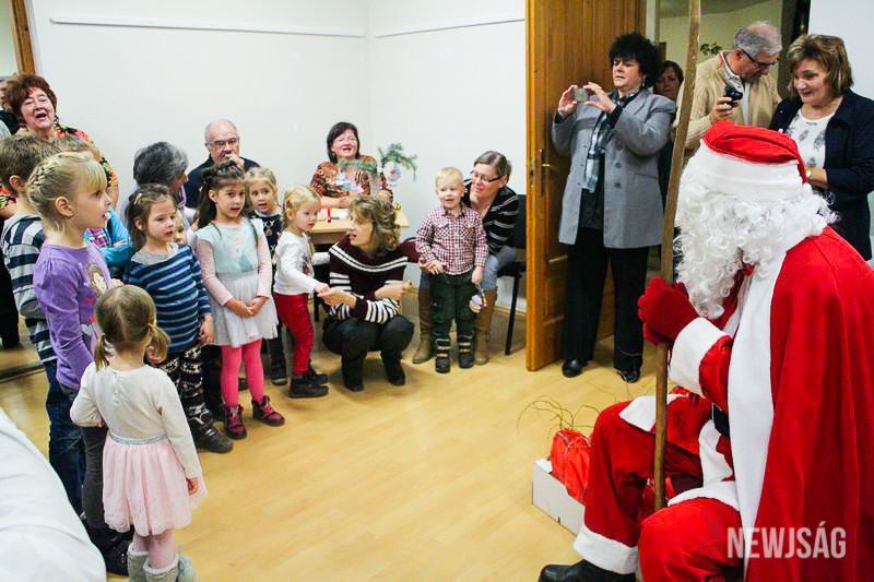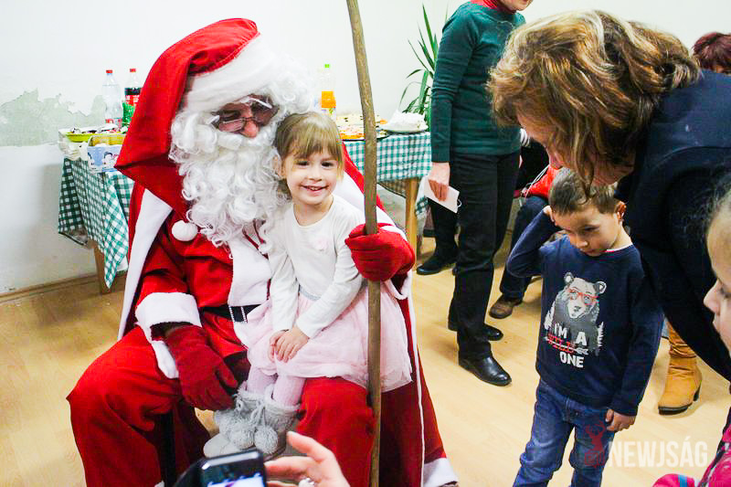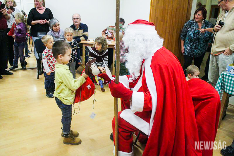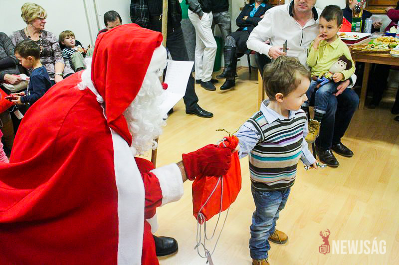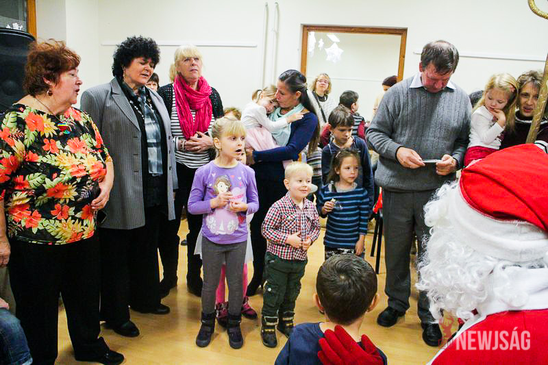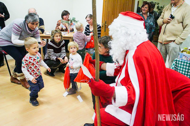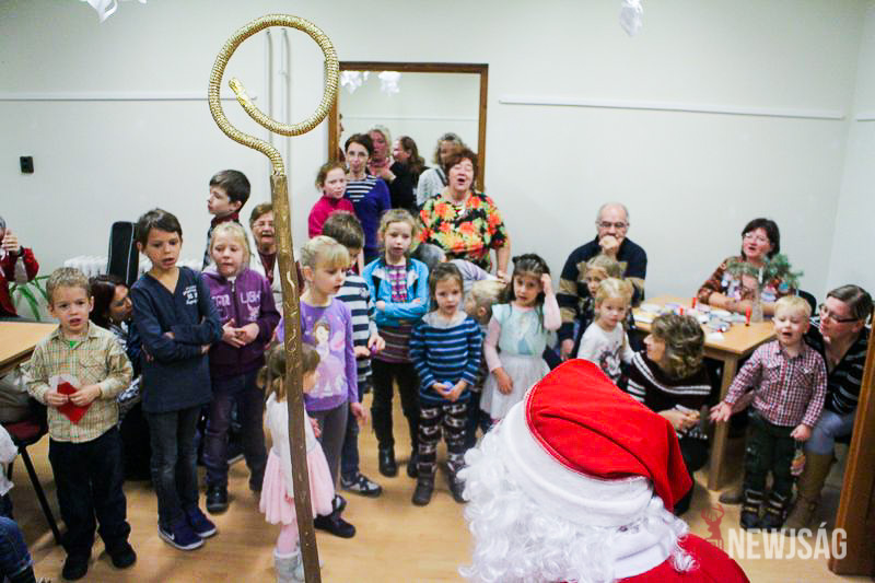 A Mikulásvárás izgalmát Fonád Zoltán hangulatkeltő gitárjátékkal csillapította, az egyik sarokban pedig kézműveskedéssel lehetett felgyorsítani az idő múlását. A több mint félórás türelemjátékot követően végül erőteljes kopogtatás hallatszott, és a közös gyermekdal hívására átlépte a küszöböt a jóságos ajándékosztó. Puttonya ezúttal csak jelképesen volt a vállára vetve, mert olyan sok meglepetést hozott, hogy két segítőre és nagyobb dobozokra is szüksége volt a szállításukhoz.