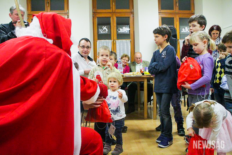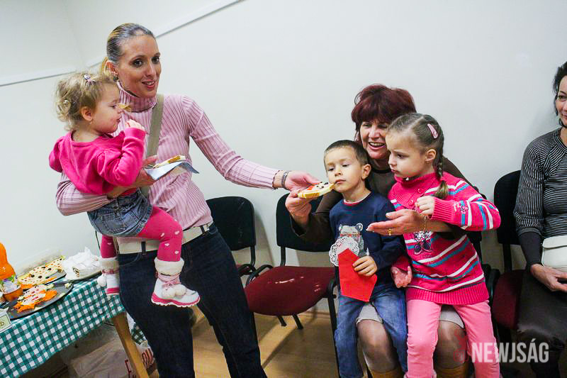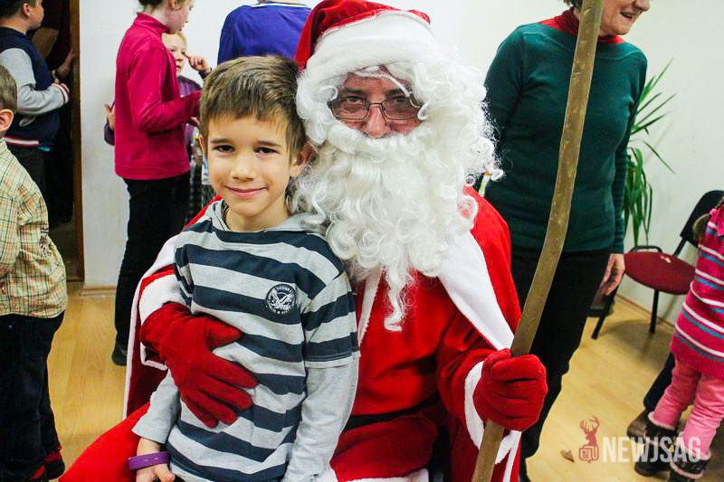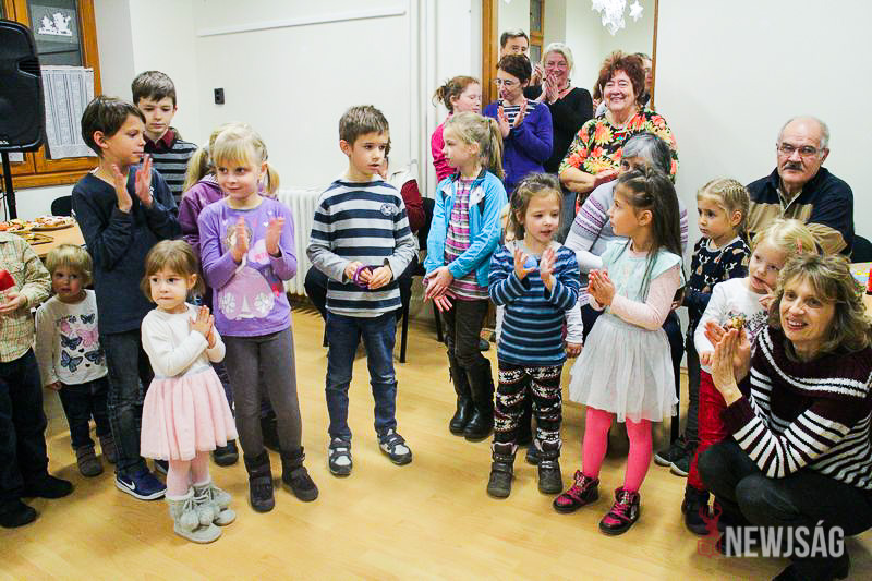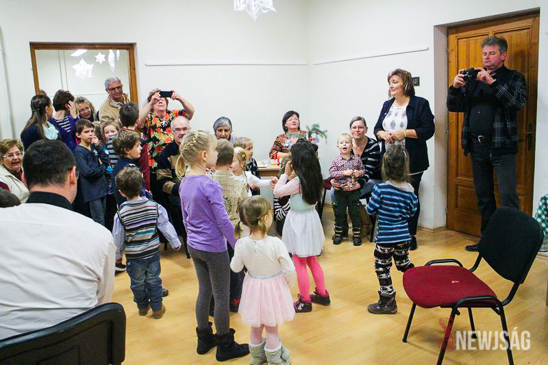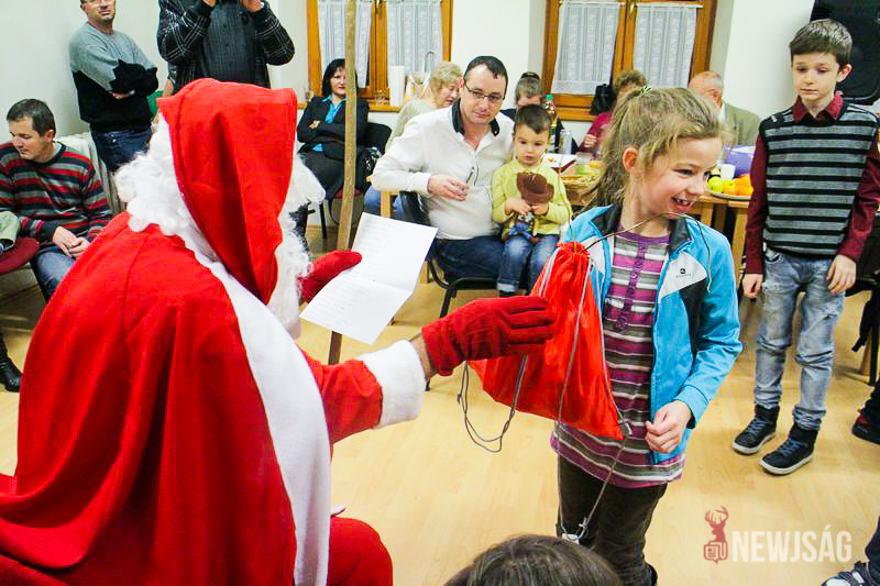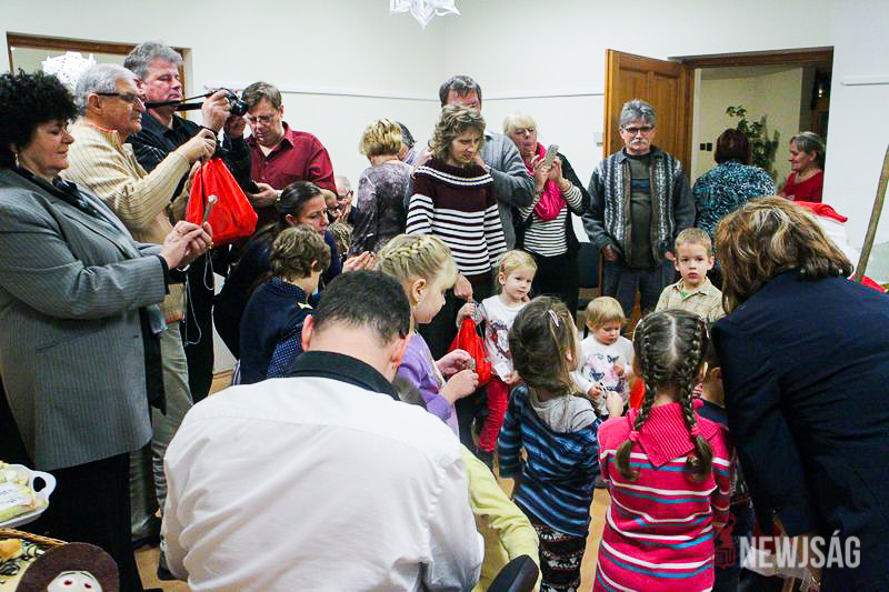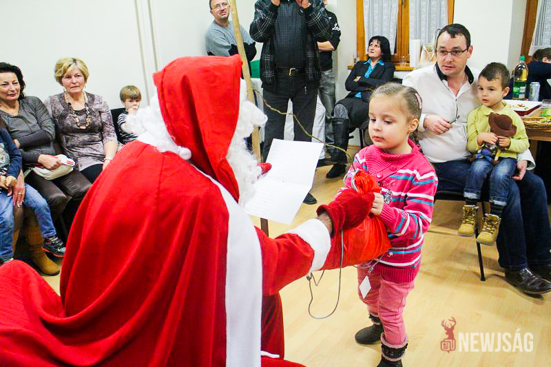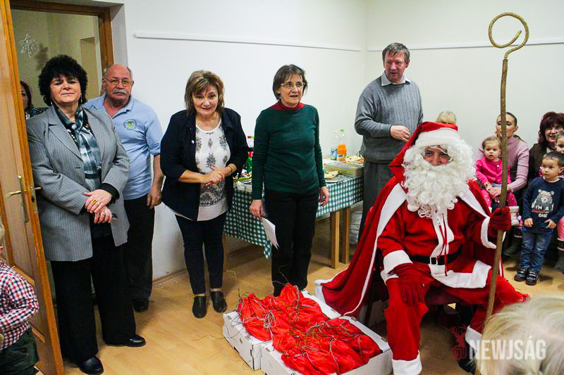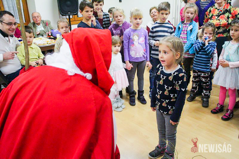 A Mikulásvárás izgalmát Fonád Zoltán hangulatkeltő gitárjátékkal csillapította, az egyik sarokban pedig kézműveskedéssel lehetett felgyorsítani az idő múlását. A több mint félórás türelemjátékot követően végül erőteljes kopogtatás hallatszott, és a közös gyermekdal hívására átlépte a küszöböt a jóságos ajándékosztó. Puttonya ezúttal csak jelképesen volt a vállára vetve, mert olyan sok meglepetést hozott, hogy két segítőre és nagyobb dobozokra is szüksége volt a szállításukhoz.