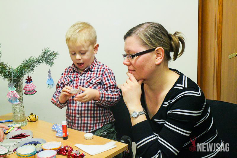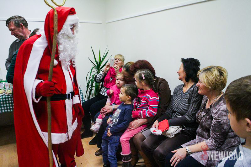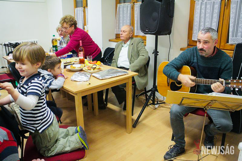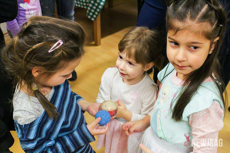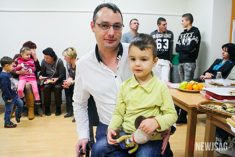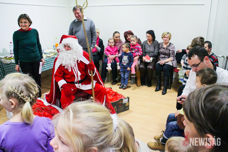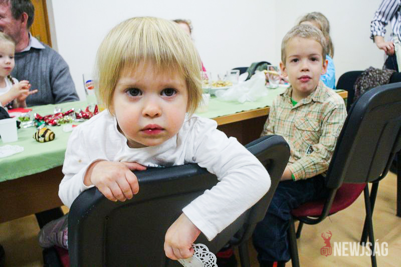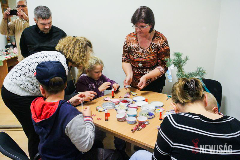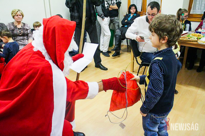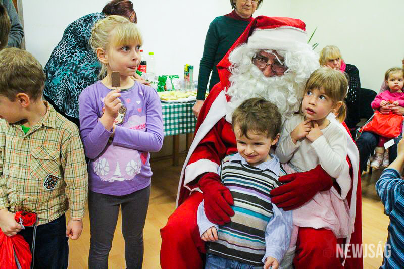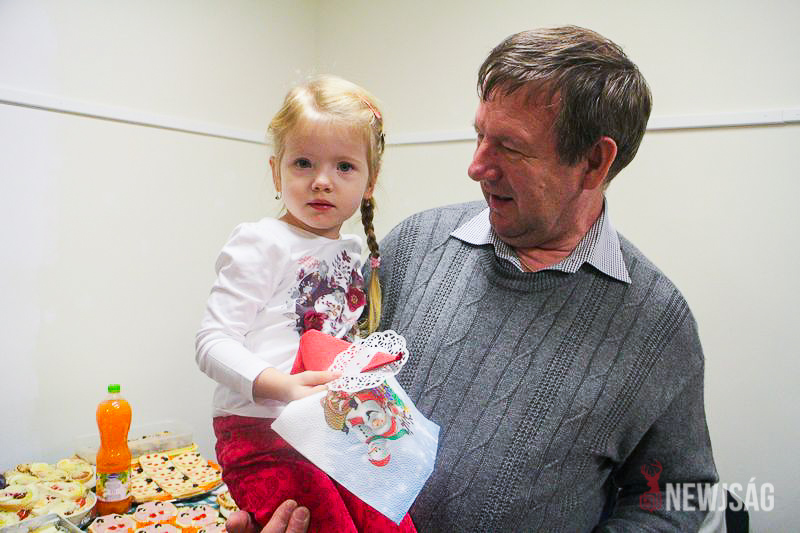 A Mikulásvárás izgalmát Fonád Zoltán hangulatkeltő gitárjátékkal csillapította, az egyik sarokban pedig kézműveskedéssel lehetett felgyorsítani az idő múlását. A több mint félórás türelemjátékot követően végül erőteljes kopogtatás hallatszott, és a közös gyermekdal hívására átlépte a küszöböt a jóságos ajándékosztó. Puttonya ezúttal csak jelképesen volt a vállára vetve, mert olyan sok meglepetést hozott, hogy két segítőre és nagyobb dobozokra is szüksége volt a szállításukhoz.