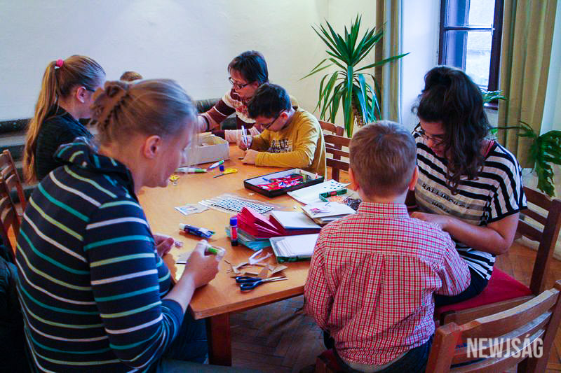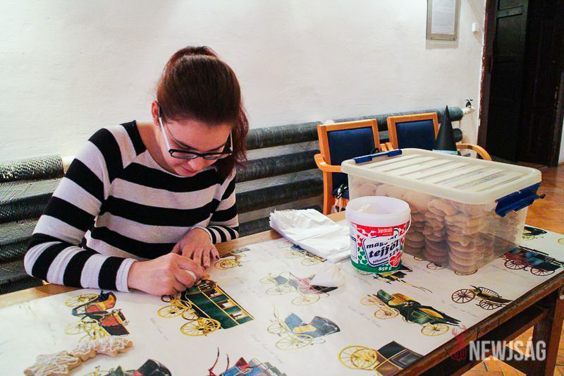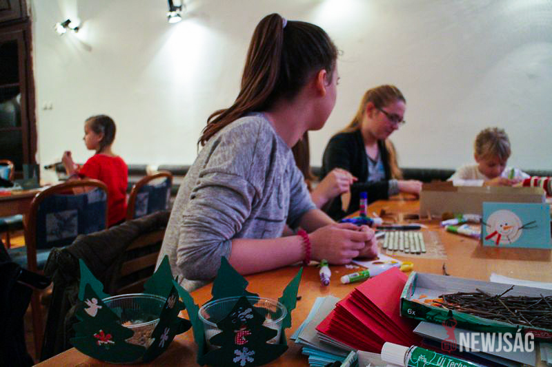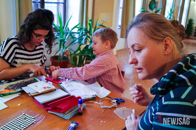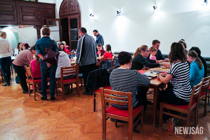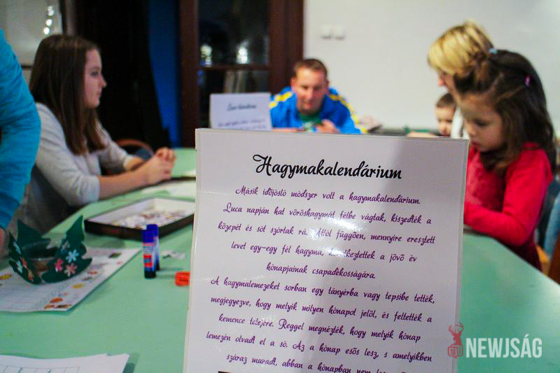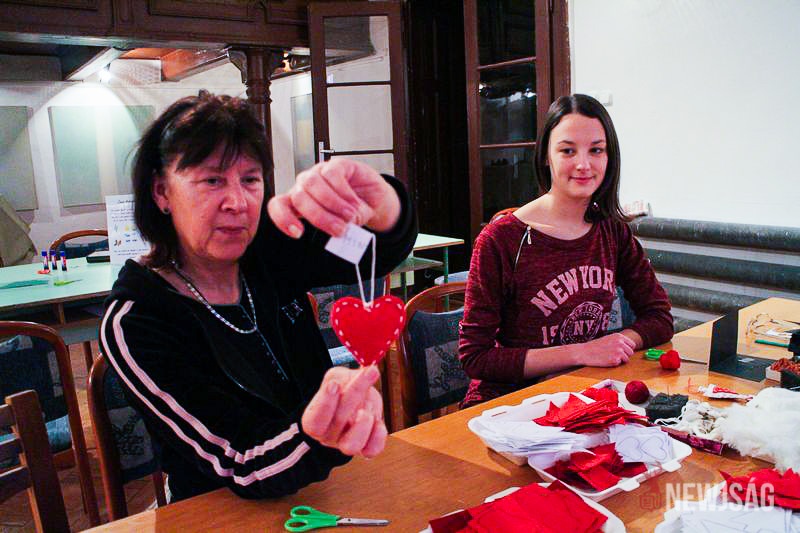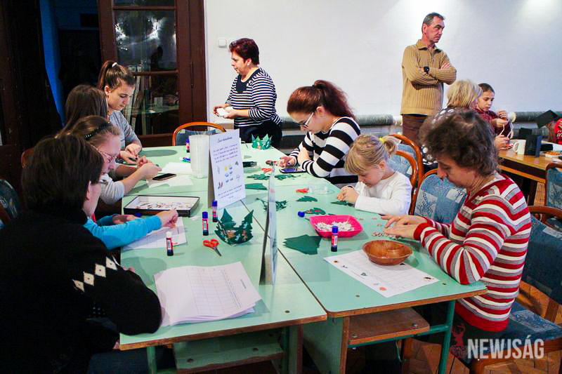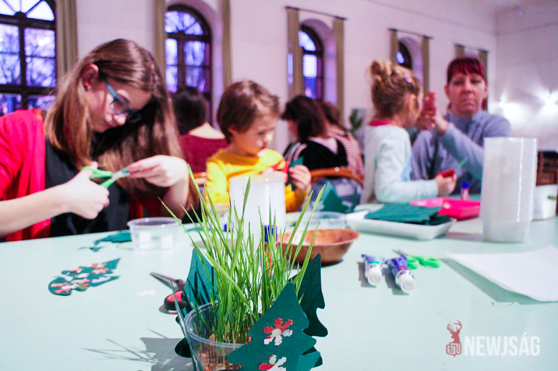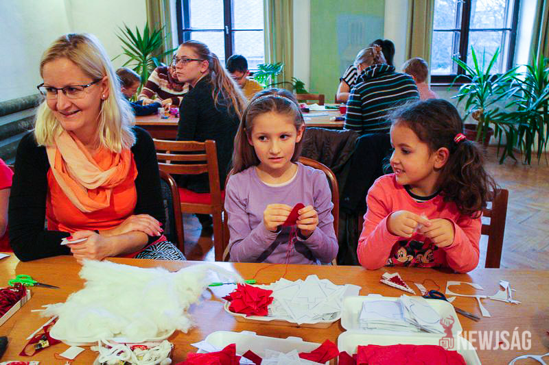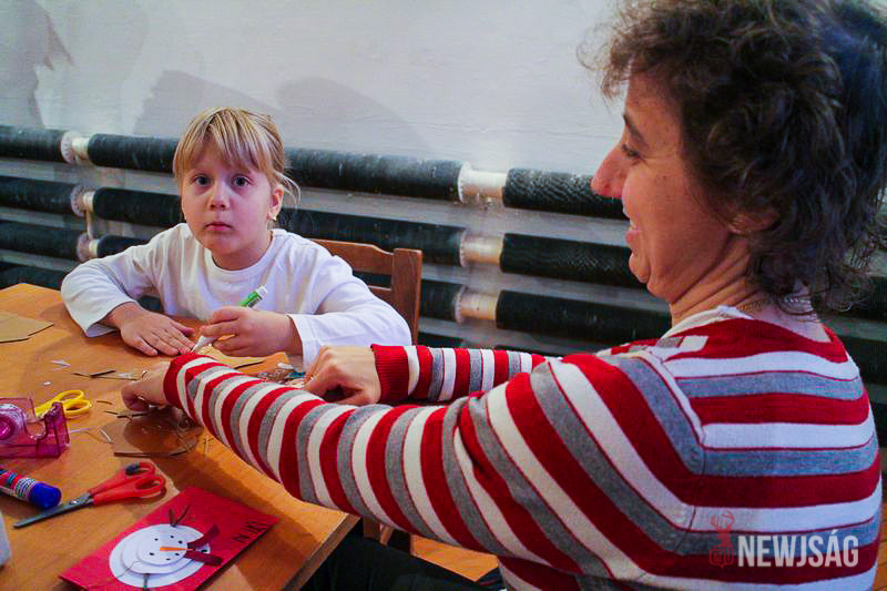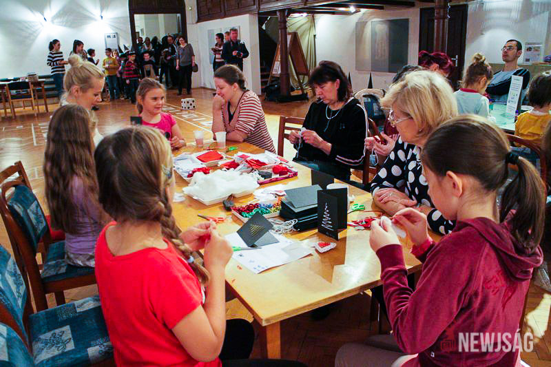 Az előadást követően mindenki sietett vissza félbehagyott munkájához. Megteltek az asztalok Luca-naptárt, üdvözlőlapot, textilszívet és karácsonyfával díszített tárolóedényt fabrikáló gyerekekkel, és a mézeskalácsok körül is egyre többen sürgölődtek.
