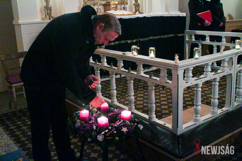 Karácsonyi kézműves vásár késztette megállásra az evangélikus templom felé sietőket advent negyedik vasárnapján. Odabenn, az oltár mellett elhelyezett adventi koszorún már csak egyetlen gyertyaláng nem égett. Ezt Jansik Györgyné, a Csabacsűdiek Baráti Köre Hagyományőrző Egyesület elnökének felkérésére Molnár József, a település polgármestere gyújtotta meg.