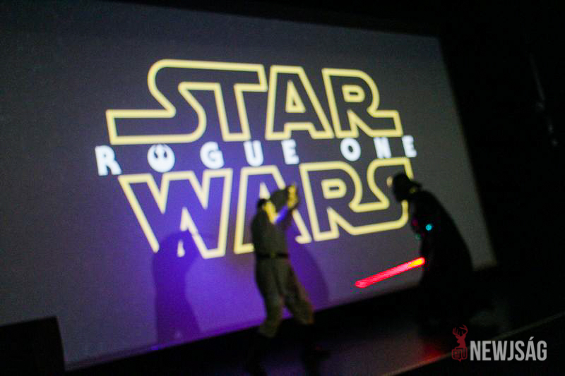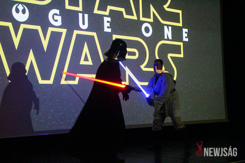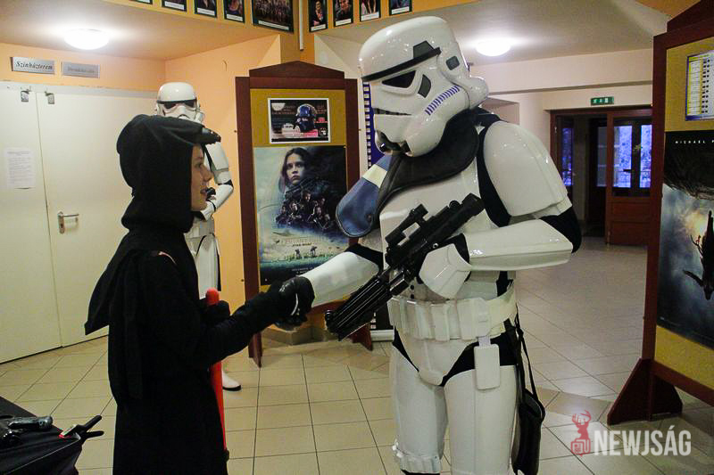 Szarvason – a világpremiert követő napon – december 15-én láthatta először a közönség a történet folytatását. Jobban mondva, időrendbe állítva a 3,5-dik részt, hiszen a film az 1977-es Csillagok háborúja előtt játszódik, a Star Wars: Lázadók után öt évvel. A Szarvasi Moziban a legtöbben hétvégére időzítették a nagy kalandot, de arra senki sem számított, hogy megelevenednek a filmvászon szereplői, és az aulában fel-alá sétálva pózolnak a nézőkkel.