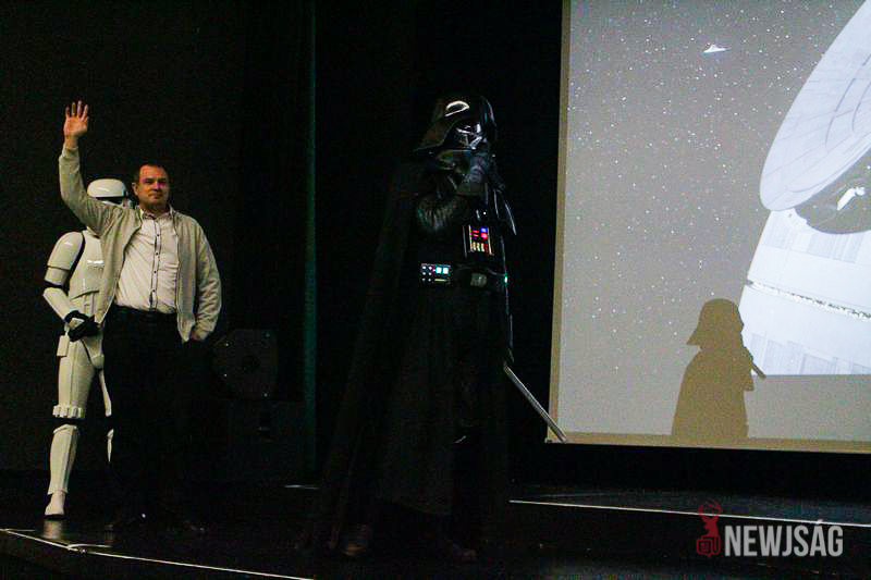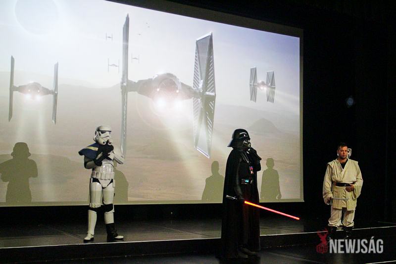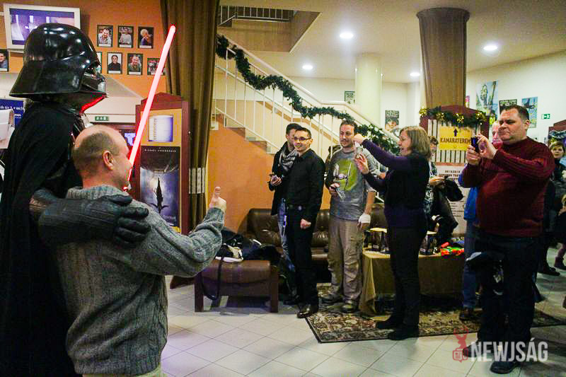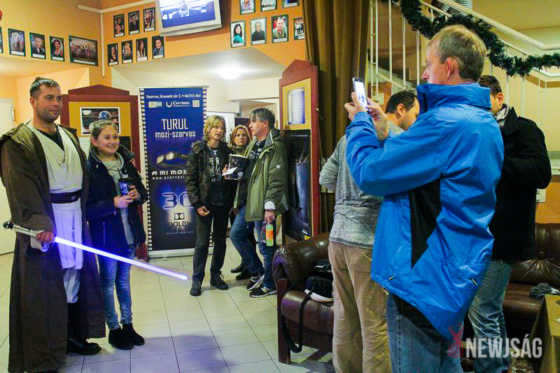 – Nagy Star Wars rajongó vagyok – ismerte el Hodálik Pál alpolgármester, aki kisfiát, Ádámot hozta el a vetítésre. Emlékszem, amikor a negyedik, ötödik, hatodik rész bekerült a mozikba, akkor még nem ilyen modern technikával, tolongtunk a jegyért, és szüleinktől ellógva beültünk a moziba. Főiskolás koromban az is előfordult, hogy egy-két őrült társammal együtt képesek voltunk egy este alatt a komplett trilógiát megnézni, és addig nem feküdtünk le, amíg a 3×3 órát le nem tudtuk – teszi hozzá, és lelkesedését mi sem bizonyítja jobban, mint hogy a legújabb epizódot sem egyszer nézte meg.