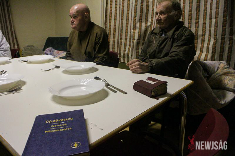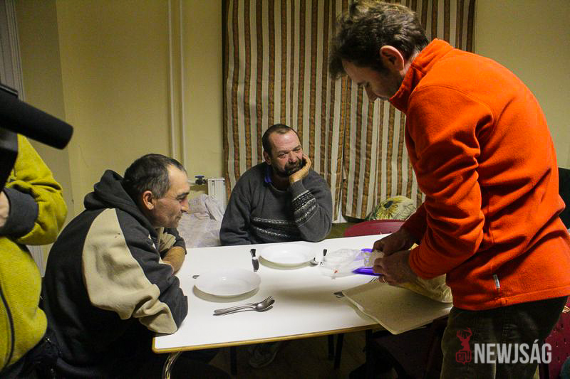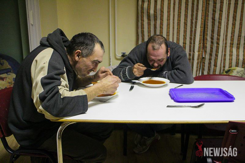Volt, aki nem szívesen vállalta az arcát, és kapucnival a fején foglalta el helyét, a legtöbben azonban örültek az érdeklődésnek, és kendőzetlenül meséltek az életükről. A pénteki menü paradicsomleves és krumplistészta volt, amit a Korona Gyorsétterem jóvoltából fogyaszthattak el a „hotel lakói”.