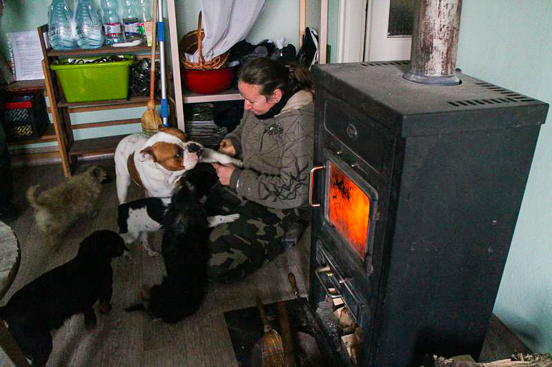 Közben Réka bevezet a szociális helyiségbe, ahol a pattogó tűz körül négy-öt kutyus foglal helyet. Ők a betegek, a napokban talált és a szabadon élők közül kerülnek ki, és ki ugrálva, ki pedig farkcsóválva vagy „kutyapuszival” fejezi ki háláját megmentőjének.