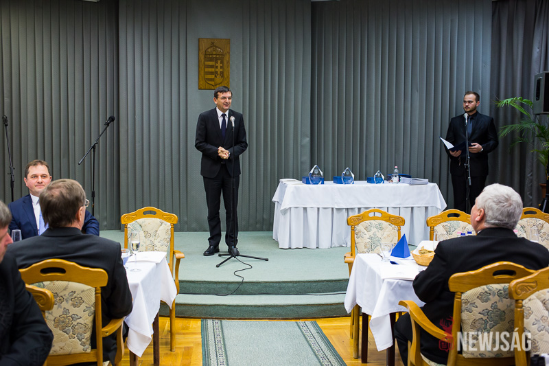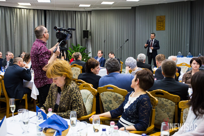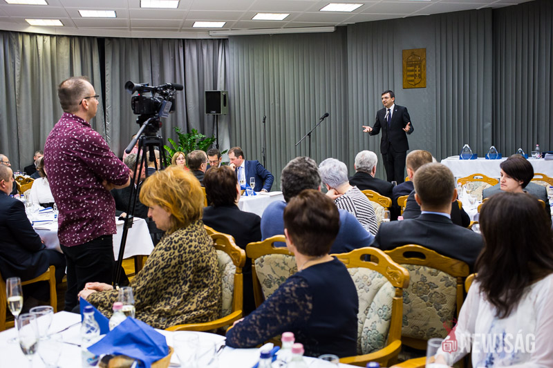 Péternek a műsora után elsőként Domokos László köszöntötte a város legnagyobb adófizetőit, szólt az Állami Számvevőszék tevékenységéről, adókról, adórendszerről. “Javuló híreket lehet ma hallani”, mondta, “fehéredik a gazdaság”, ami lehetővé teszi azt, hogy az adók csökkenjenek, az állam visszaadjon abból, amit elvett.