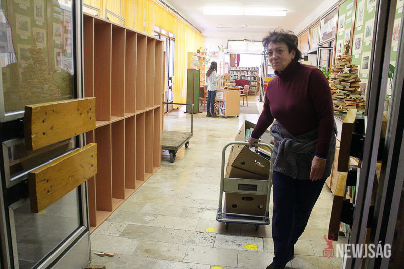 A dobozolás és a polcok elhelyezése már az év első napjaiban megkezdődött, január 9-től pedig teljes kapacitással erre a feladatra összpontosítottak. A könyvári tér átrendezésébe két közfoglalkoztatottat is befontak, a nagyobb bútordarabok mozgatásához pedig önkormányzati segítséget is igénybe vettek. A látszólag kevés fizikai erőfeszítést, de annál nagyobb kitartást és összehangolt munkát igénylő pakolás néhány nap után éreztette hatását, olykor kisebb-nagyobb ízületi problémákat is okozva.
