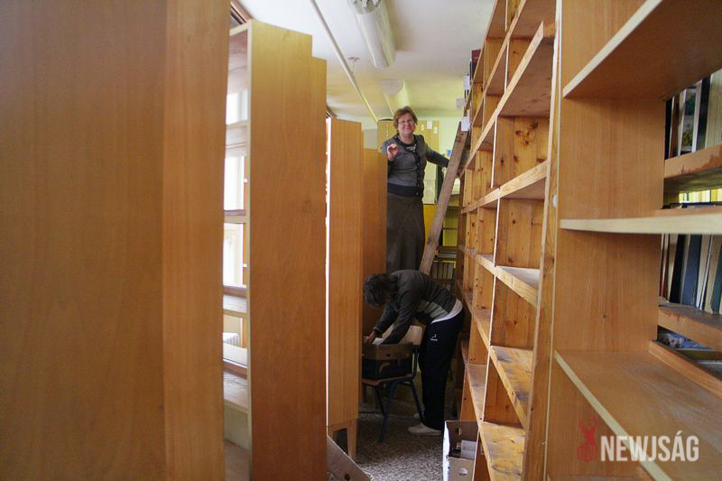 – Ez bizony nem volt könnyű munka – állítja Harencsár Lászlóné könyvtáros, aki hétfő reggel már jobb kezén fáslival érkezett. Ha csak abba gondol bele az ember, hogy mit jelent egy háztartásnál egy könyvespolcnyi könyvet átrakni egy másikra, könnyen beláthatja, hogy több mint 60 ezer kötetet milyen erőráfordítással lehet átrendezni. És az is megesett, hogy nem is csak egyszer tettük meg. Pontosan ugyanis nehéz kiszámítani a könyvek helyét, ezért többször is leleményesnek kellett lennünk, és meg kellett oldani a nem várt helyzeteket.
