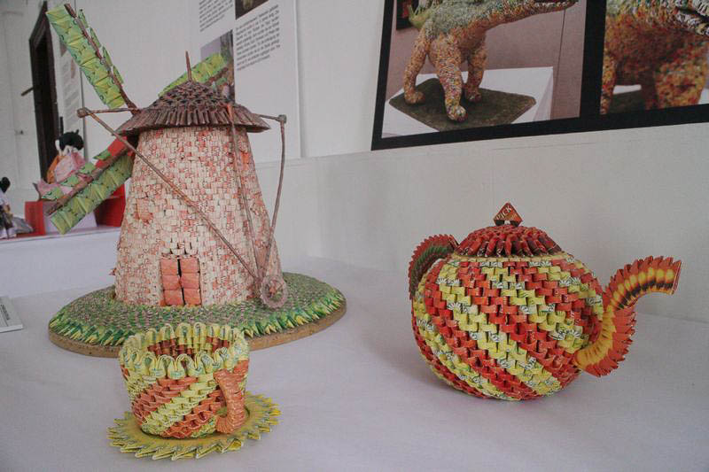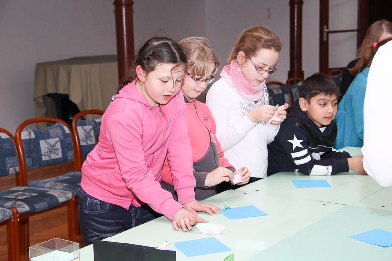 Az érdeklődők nemcsak megismerkedhetnek a hajtogatott műalkotásokkal, hanem ki is próbálhatják tehetségüket a február 8-ig látogatható papírcsodák világában.