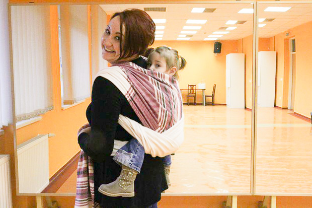 Anikó jó példával elől. Kislányát születésétől kezdve hordozza, aki láthatóan otthonosan érzi magát a megszokott pózban. Édesanyja időközben elvégezte a Maminbaba oktatói tanfolyamot is, ami ezt a szoros együttlétet egészíti ki a tánc és a mozgás örömével. Azt mondja, gyermeke gyakran kéredzkedik fel a hátára, és az is előfordul, hogy kis idő elteltével álomba szenderül.